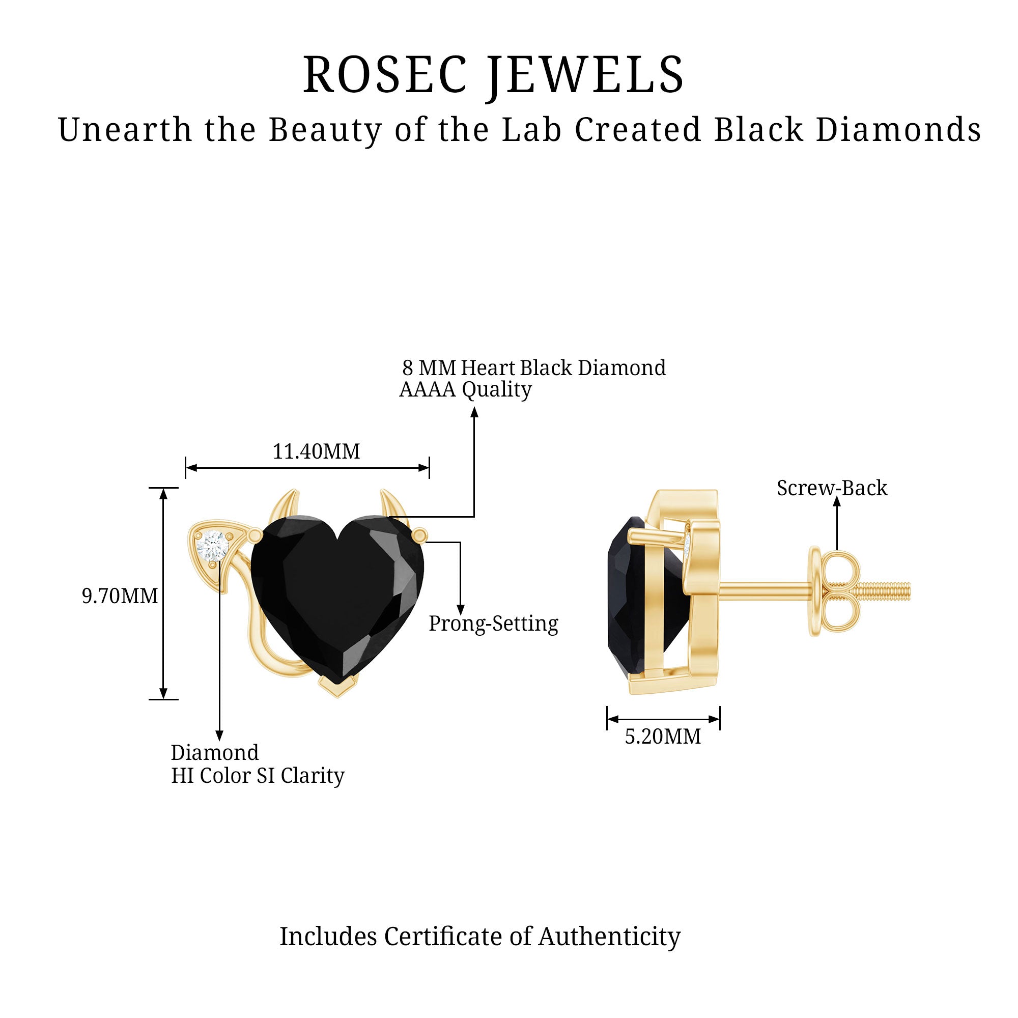 Turn heads with your impeccable style and captivating glamour. Our Gothic Stud Earrings feature an 8 MM heart shaped Lab Created Black Diamond that exudes stunning beauty. The tail is adorned with a White Diamond, making it a truly breathtaking piece that will captivate all who lay eyes on them. The combination of black and white diamonds in these Heart Stud Earrings is truly captivating. They are made with high-quality metal and come with a secure screw-back closure, so they stay in place all day. Whether you are dressing up for a special event or just adding something fun to your everyday look, these Lab Grown Black Diamond Earrings are easy and comfortable to wear. The playful devil-inspired design adds a bold twist, making the duo stylish and full of personality. They are a great choice for Halloween, date nights, or anytime you want to show a more daring side of yourself. These Gothic-style Black Heart Earrings offer a fun and unique accessory that stands out without trying too hard.