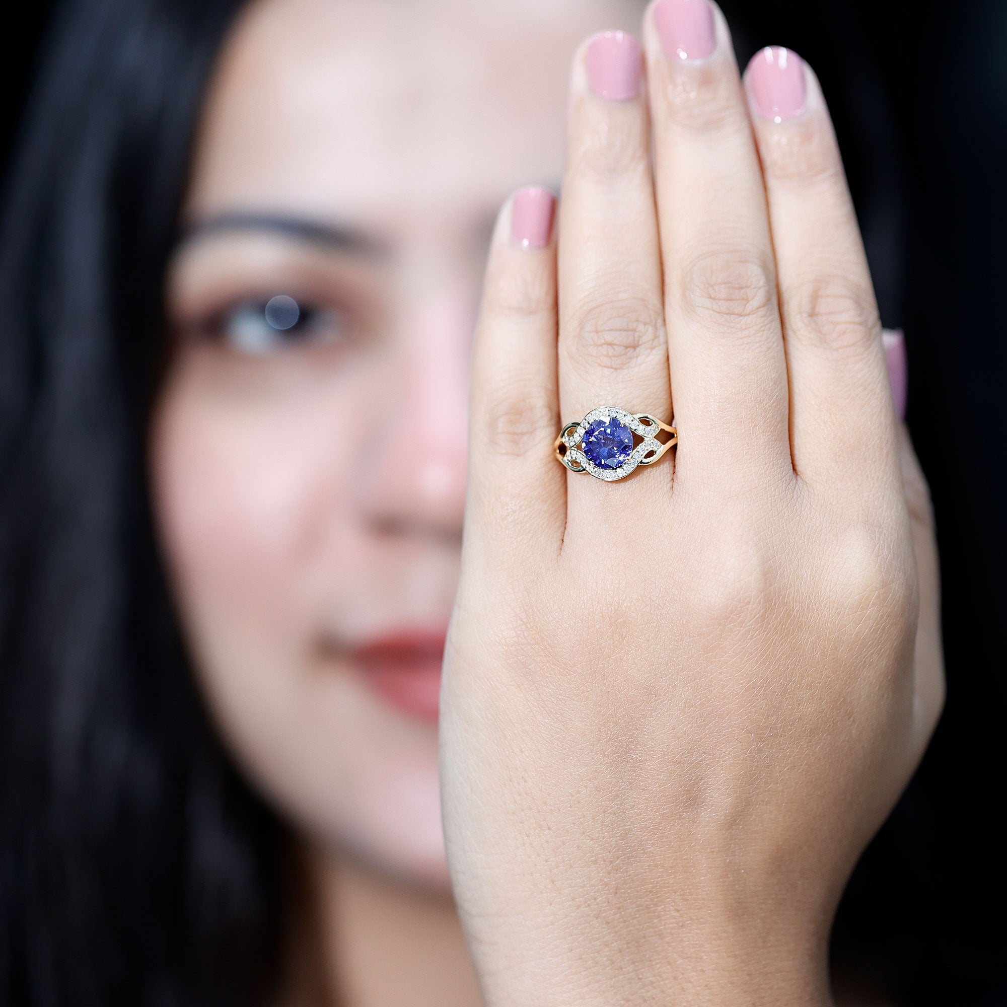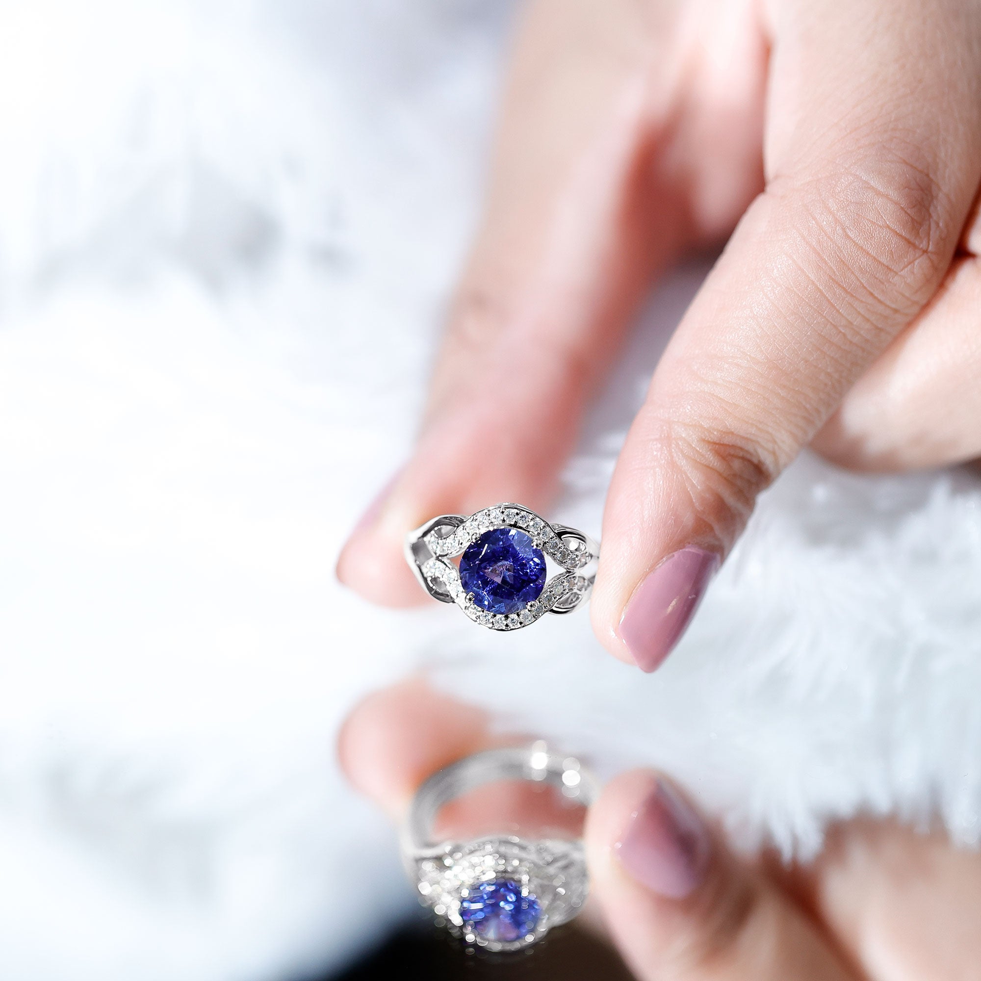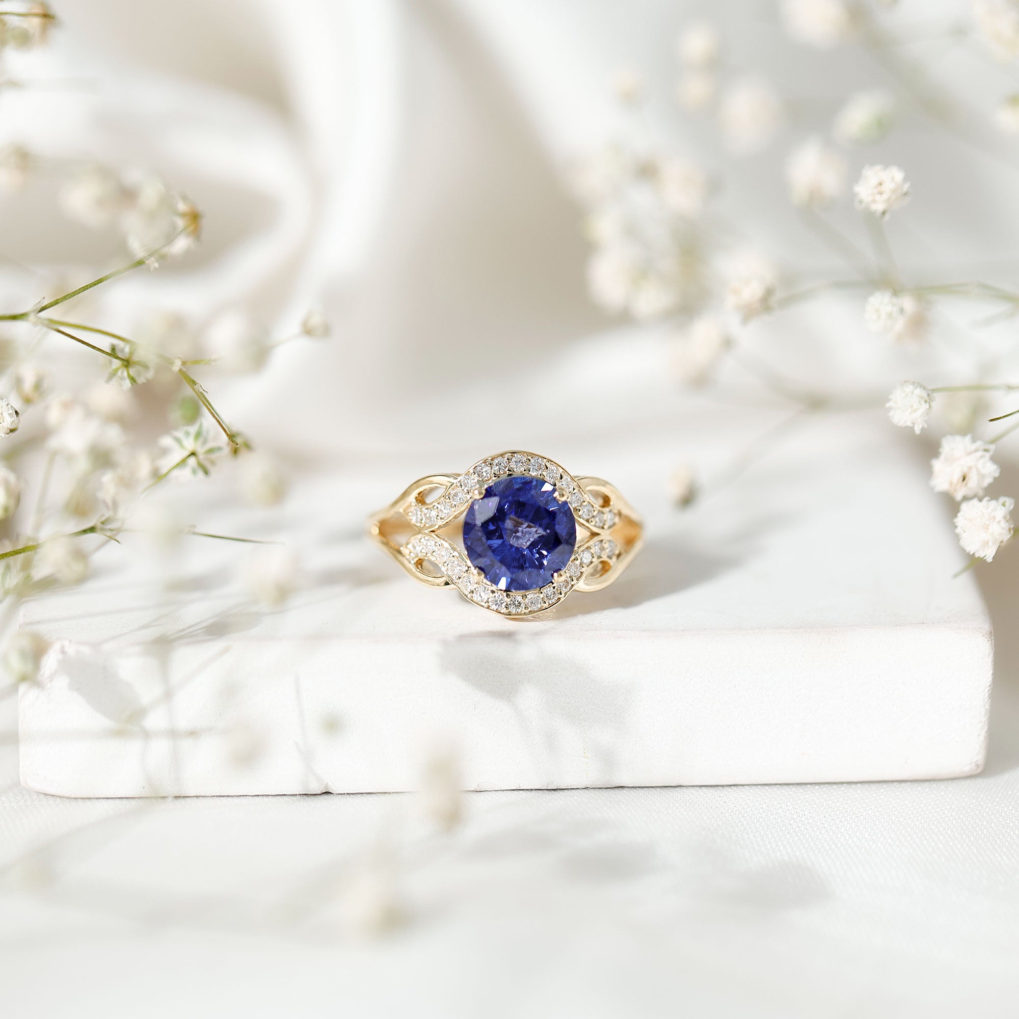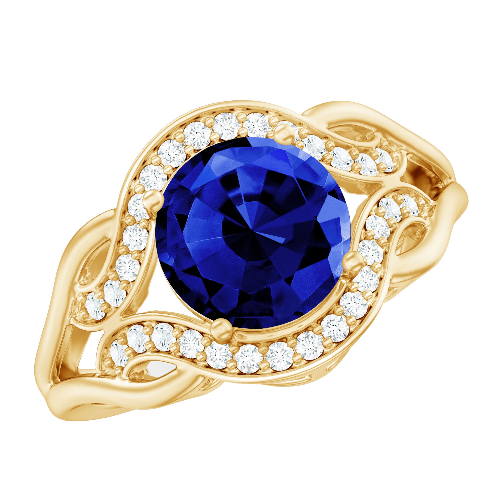 Indulge in timeless elegance with our Art Deco Ring featuring a 8 mm Round Shape Lab Grown Blue Sapphire encircled by dazzling Lab Grown Diamond gemstones. The meticulously crafted Art Deco design evokes a sense of opulence and sophistication with Aaaa Quality Sapphire and Ef-Vs Quality Diamond. Elevate your style with this Statement Ring, a testament to superior craftsmanship. Experience the epitome of glamour and individuality with this Sapphire Diamond Ring, where innovation meets tradition in every sparkling facet.