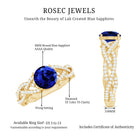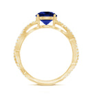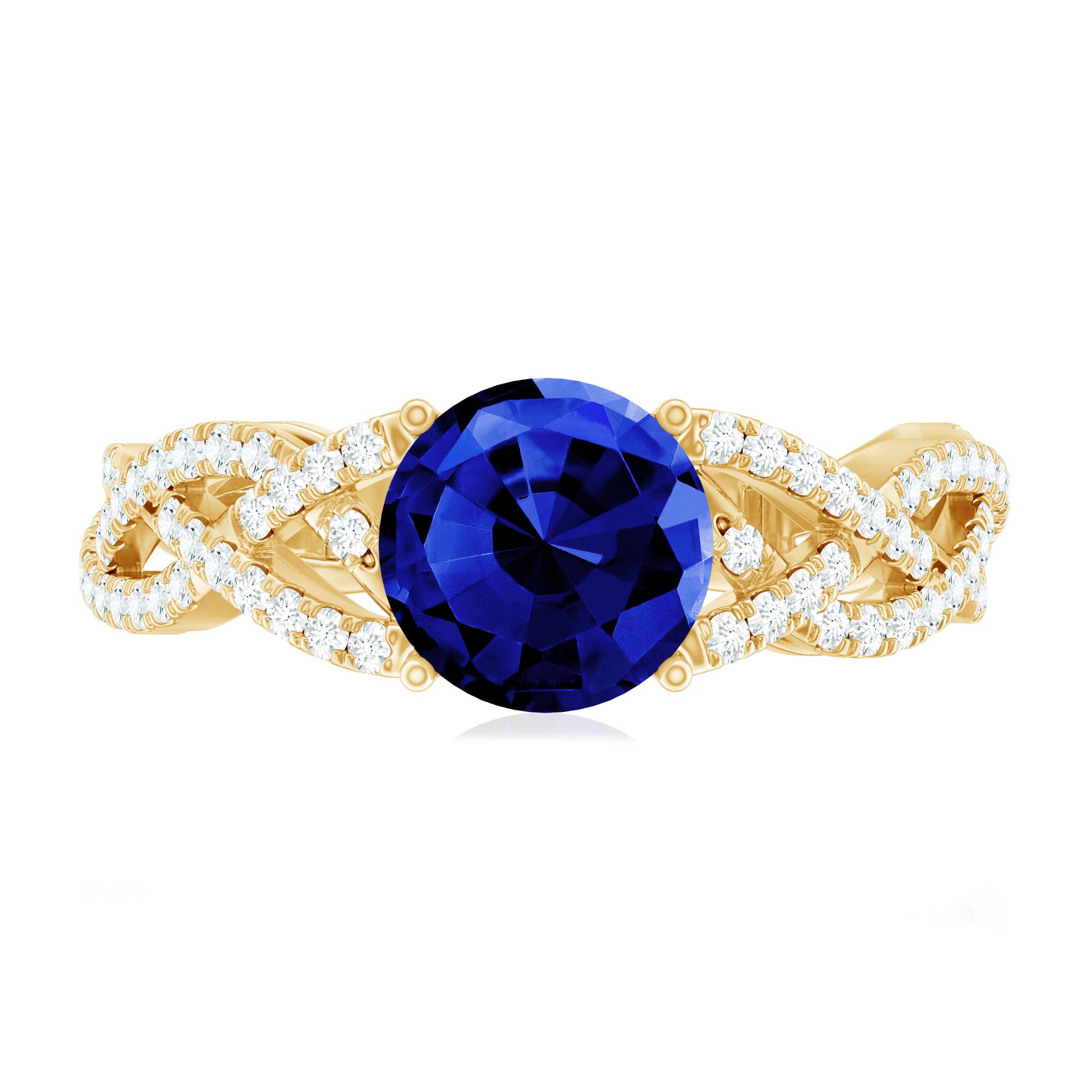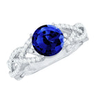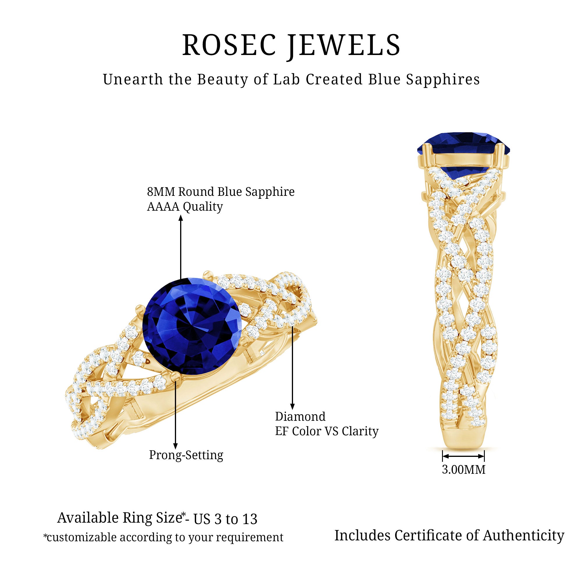 On your special day, elevate your love story with this mesmerizing Solitaire Engagement Ring. Crafted to perfection, the 8 mm Round Shape Lab Created Blue Sapphire set as a center stone. The intricate braided band adorned with delicate Diamond gemstones (Synthetic) symbolizes the intertwining of two lives. Meticulously designed, this Sapphire Diamond Ring embodies timeless beauty and commitment. The Aaaa Quality Sapphire and Ef-Vs Quality Diamonds make your Engagement Ring not only a symbol of love but also a statement of conscious choices.