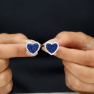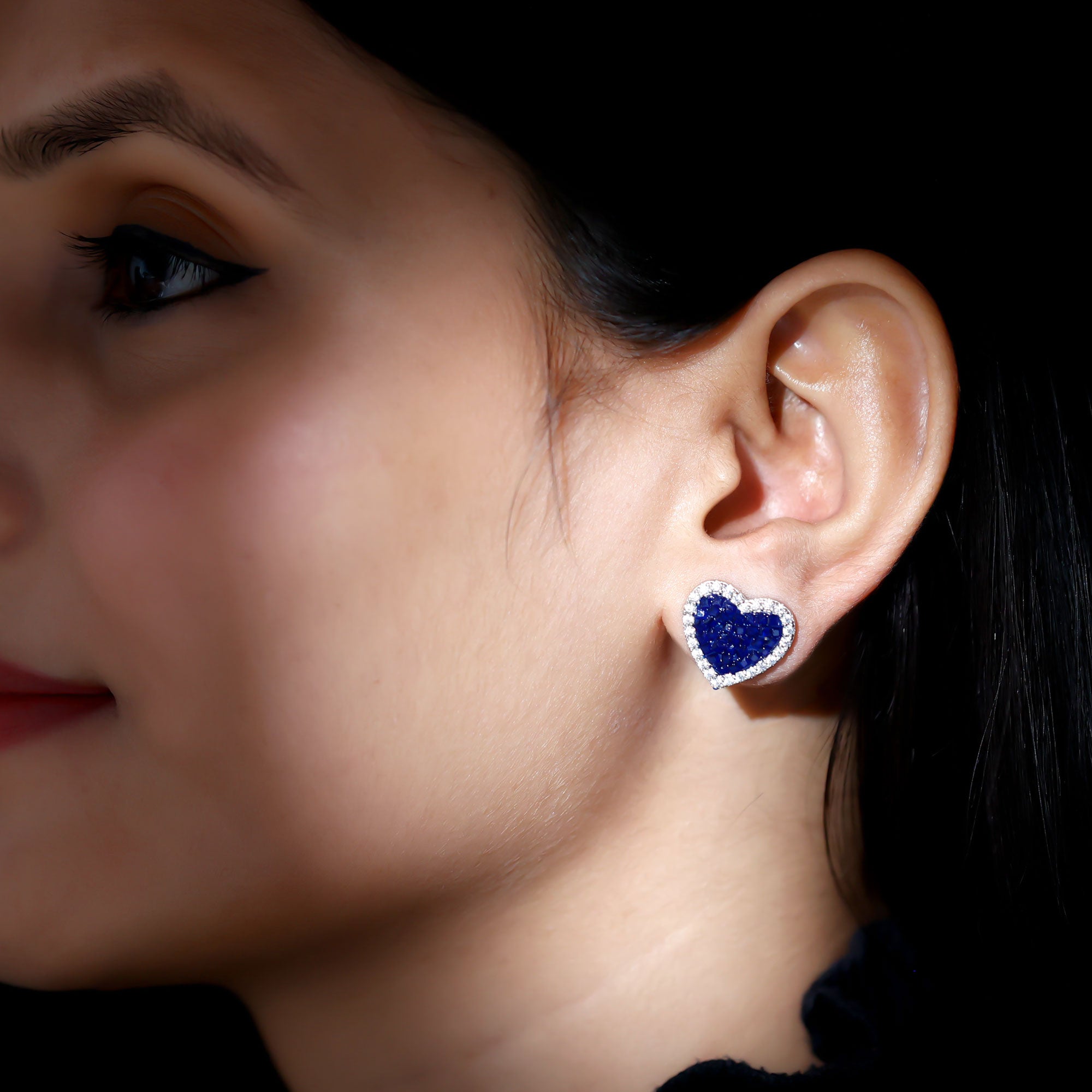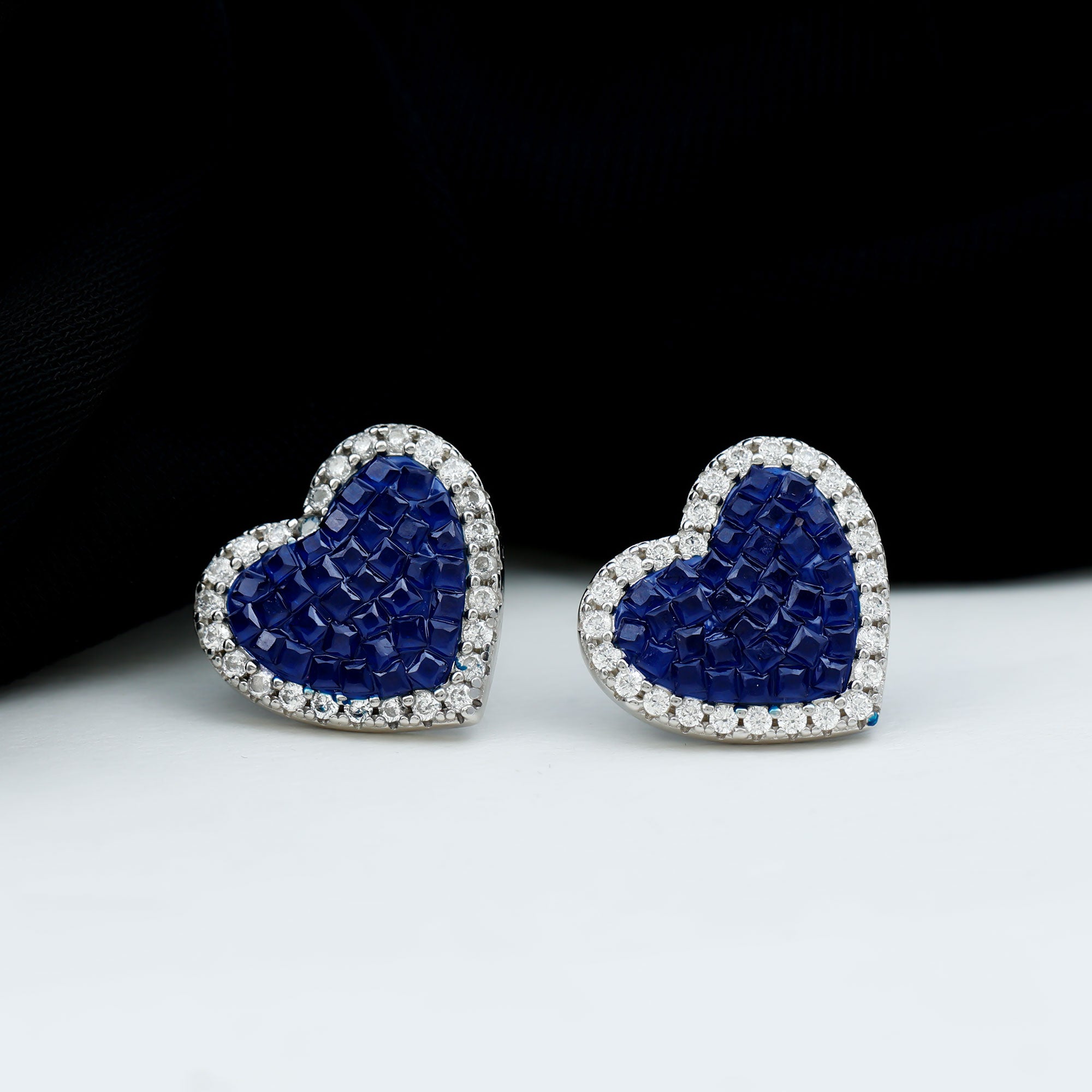 Handcrafted with love and designed to capture the essence of elegance, these Heart Shaped Earrings are a true celebration of timeless beauty. Each Earring features a delicate Heart Shaped frame adorned with 2 mm Princess Cut Lab Created Blue Sapphire stones that shimmer with a deep, captivating hue. Surrounding the heart, a Halo of dainty Zircon stones adds a gentle sparkle, creating a luminous contrast that brings the design to life. Fashioned in 925 Sterling Silver, these Heart Stud Earrings radiate sophistication while maintaining a romantic charm. The secure Screw Back Closure ensures they stay comfortably in place, whether you are dressing up for a special occasion or adding a touch of sparkle to your everyday look. Perfectly versatile, these Lab Grown Sapphire Earrings pair effortlessly with everything from chic evening dresses to casual daywear, making them a piece you will reach for again and again. Arriving in a signature jewelry box, these Lab Blue Sapphire Studs are an ideal gift for birthdays, anniversaries or to show someone how much they mean to you. With their heartwarming design and brilliant shimmer, these Lab Blue Sapphire Stud Earrings are keepsakes that symbolize love, elegance, and unforgettable moments.