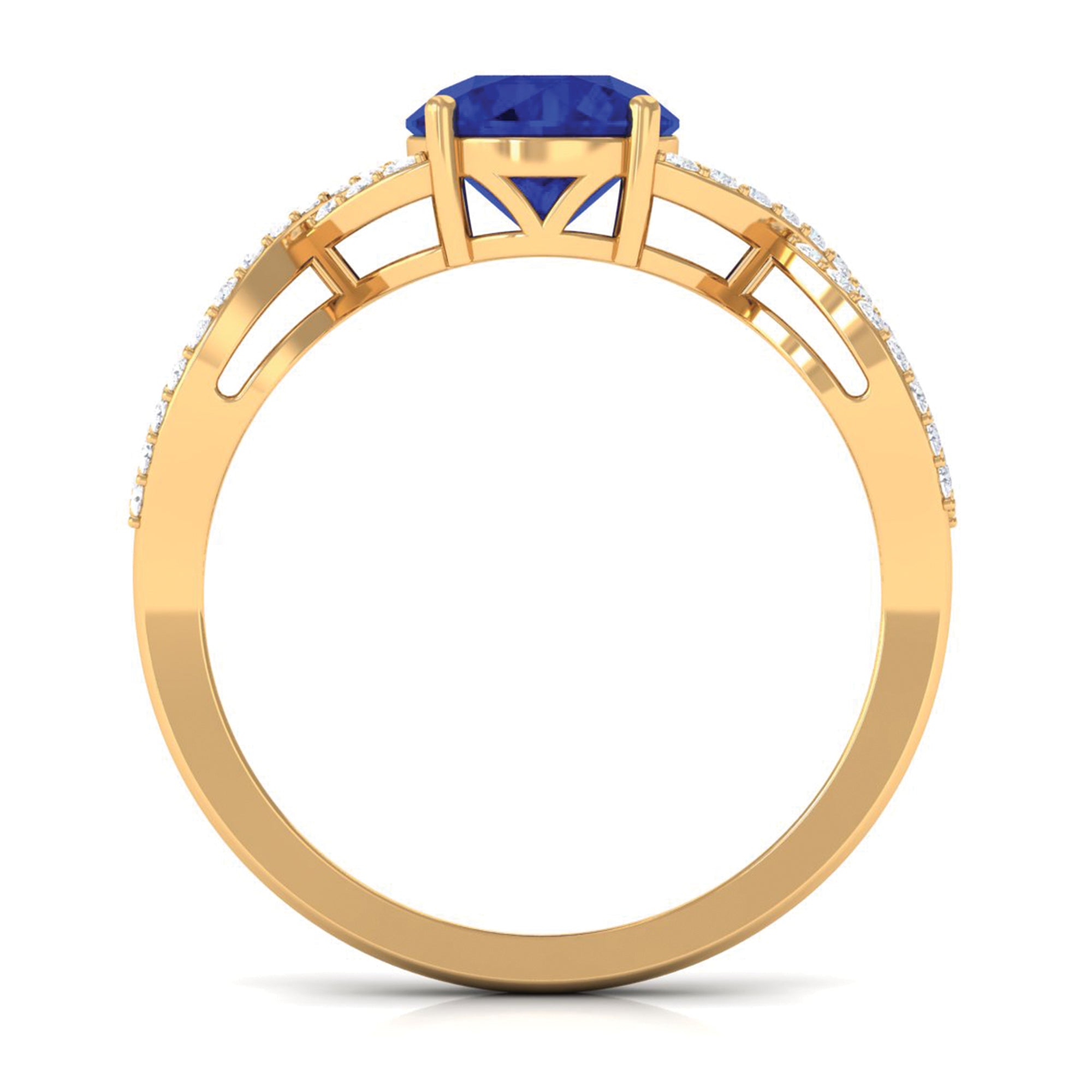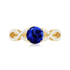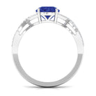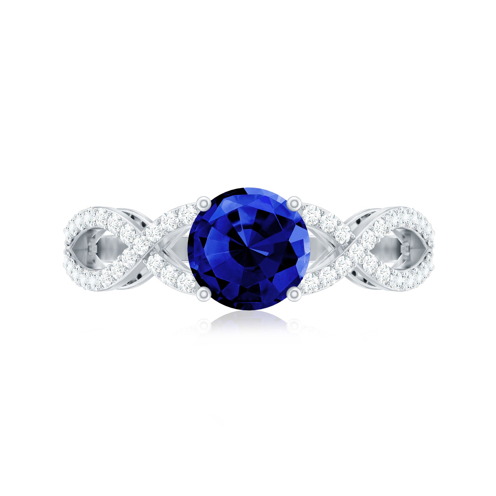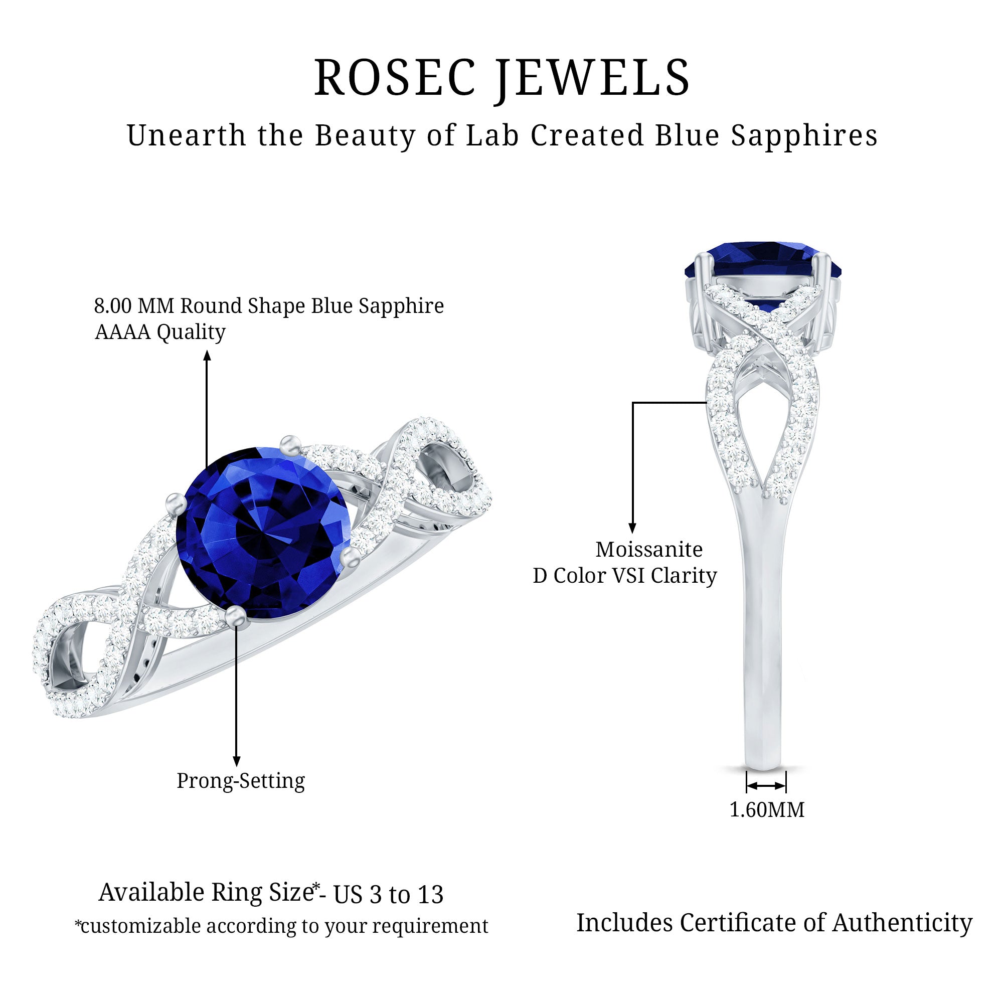 Express your feelings and devotion with this Blue Sapphire Ring the ultimate symbol of love. Showcasing a 7 MM Round Shape Created Blue Sapphire meticulously set in prong set accentuated by petite Moissanite lined on the crossover shank creating a captivating contrast she will adore forever. With its certified gemstones and exquisite craftsmanship, the sapphire ring is designed to make all your moments special. Elevate your big day to new heights and make every moment memorable with her by presenting this crossover engagement ring, made just for her.