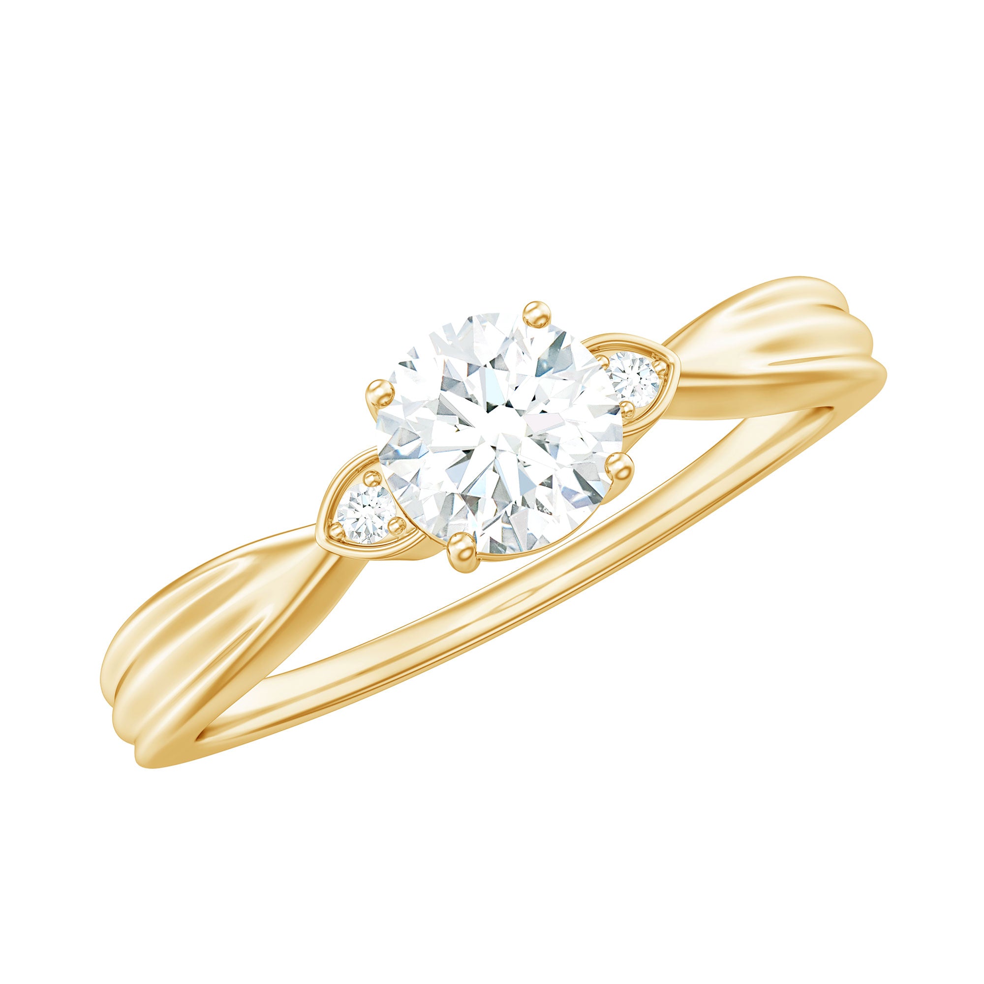 Our breathtaking 1 carat Diamond Ring is the ultimate expression of love and commitment, designed to make her heart skip a beat. The 6 MM round cut diamond (lab grown) is securely set in a safe prong setting. This Solitaire Engagement Ring has a pinched shank, where the band gracefully narrows as it approaches the center stone, drawing all attention to the dazzling EF-VS quality diamond. On either side of the solitaire round diamonds are nestled, adding more sparkle to the design. As she wears this beautiful Round Engagement Ring, it will capture a cherished memory and mark the beginning of your journey together. Let this be the ring that tells her shes your forever.