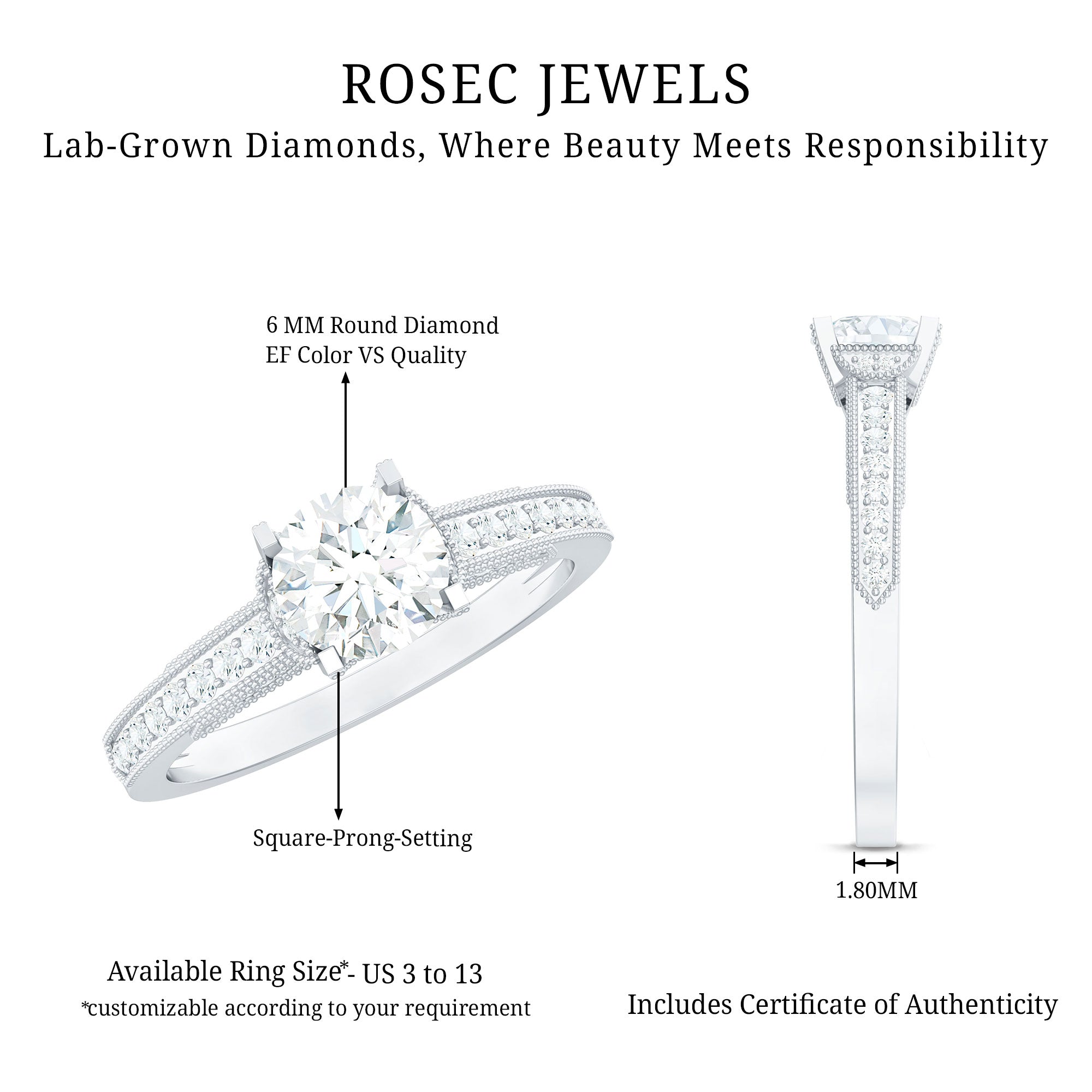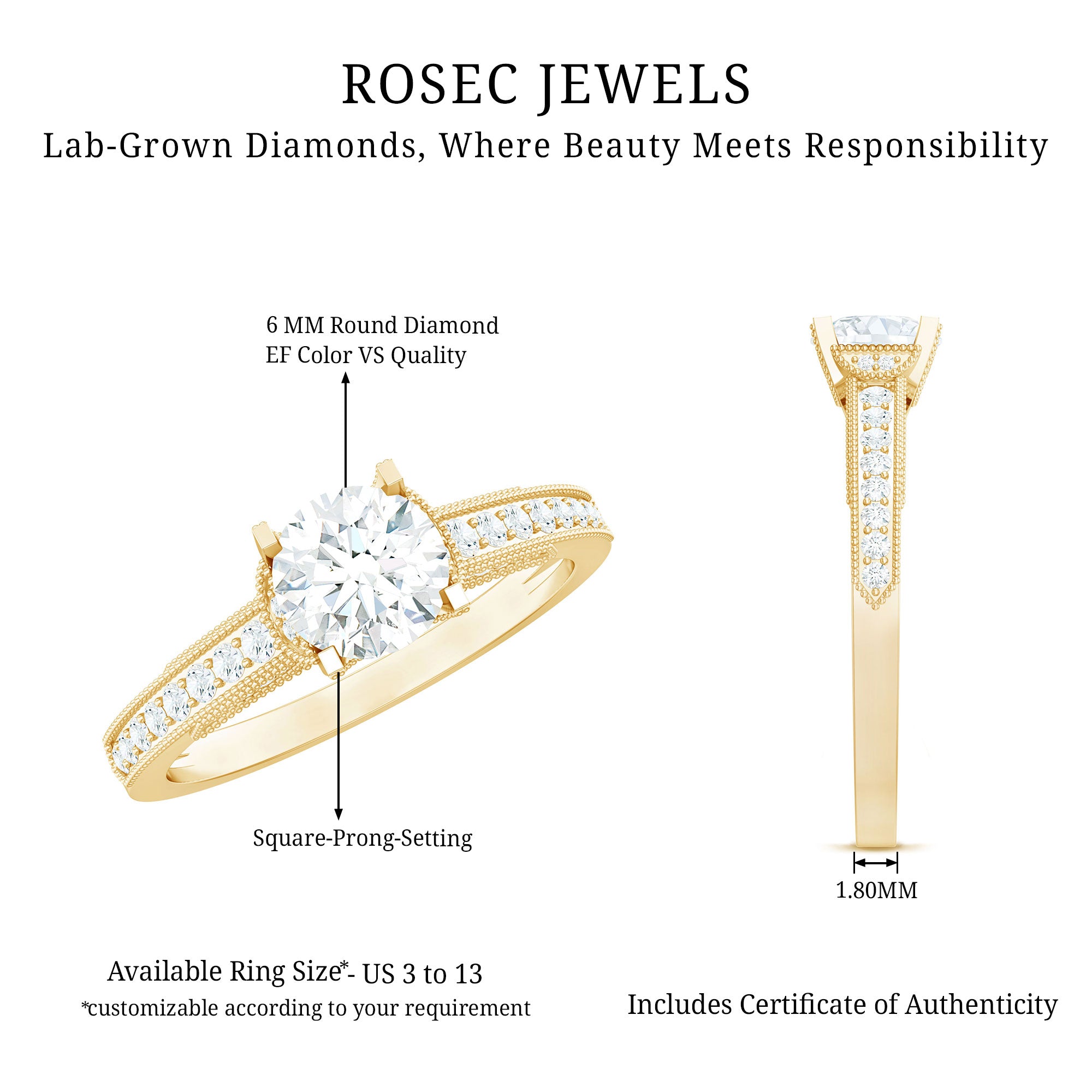 Certified Lab Grown Diamond 6 MM Round Engagement Ring With Side Stones