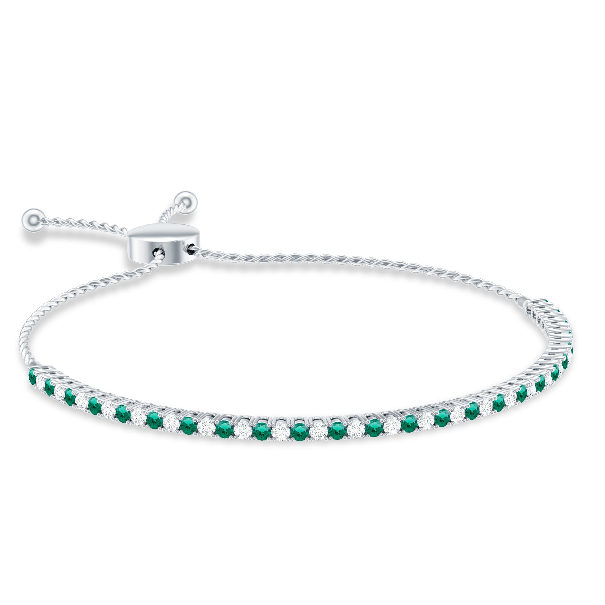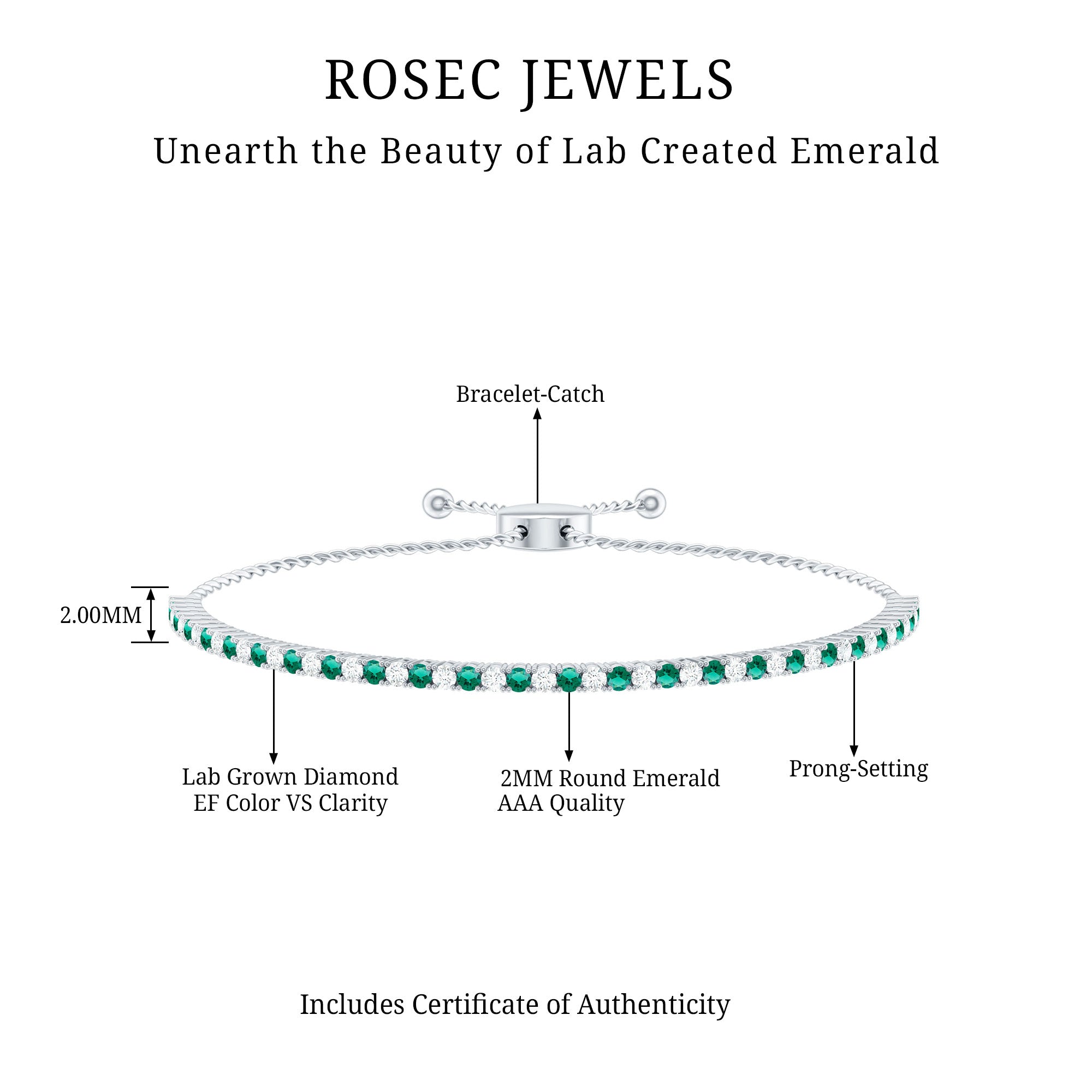 This Lab Grown Diamond Bracelet is a blend of craftsmanship and artistry that evokes a timeless charm, making it a captivating accessory for weddings, birthdays, anniversaries or just because. The striking contrast of EF-VS Quality Lab Grown Diamond and AAAA Quality Lab Emerald has a dazzling appearance that would perfectly elevate your evening ensemble or as your everyday style. This bracelet is brilliantly adorned with the Round Shape Lab Grown Diamond and Lab Created Emerald in Prong Setting, with a unique sliding clasp that allows the bracelet to adjust easily and remain secure for an effortlessly stylish statement. Standing in the test of time, Lab Diamond Emerald Bracelet gives a great look when worn alone or stacked up with other bracelet, while creating a statement look. With its quietly impactful design this Wedding Bride Bracelet has striking elegance that gives the right amount of balanced sparkle to the wrist.