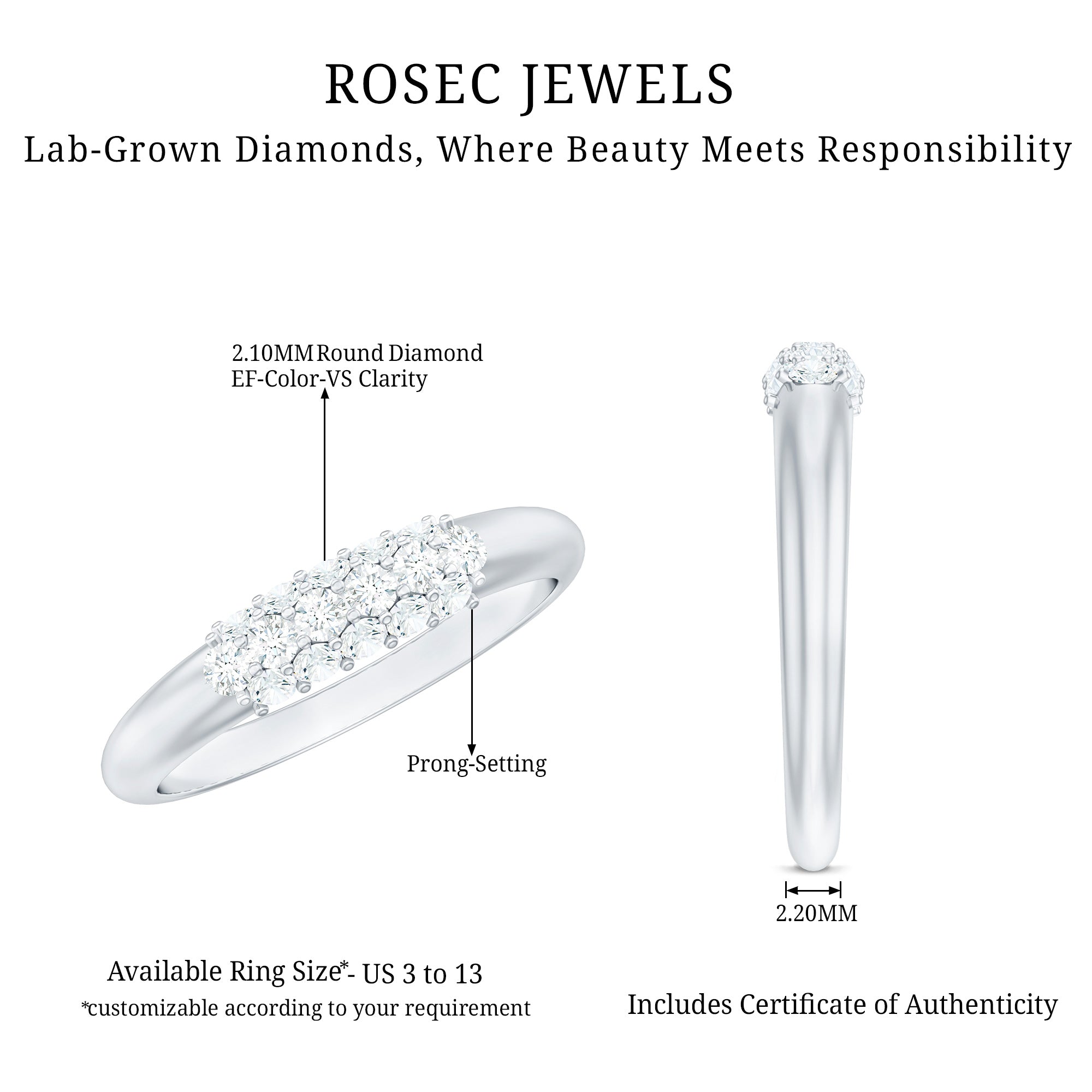 For those who appreciate the finer things in life, this Minimalist Band Ring is a must-have. This stunning Wedding Band for Women features a cluster of brilliant round shaped diamonds (EF-VS quality) at their center, carefully set in a prong setting. The plain metal band with curved edges ensures a comfortable and safe fit on your finger. Whether you are treating yourself or searching for the perfect gift, this Lab Grown Diamond Anniversary Ring is a true statement of sophistication. Also, it comes with a certificate of quality assurance, guaranteeing their craftsmanship and authenticity.