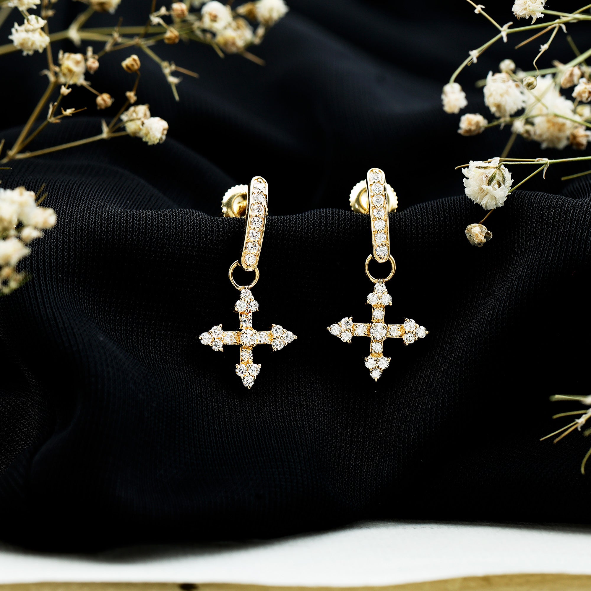 Certified Lab Grown Diamond Cross Drop Earrings For Her
