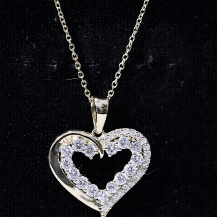 Give your heart to her in the form of Heart Shaped Diamond Pendant. This beautiful necklace from Rosec Jewels is handcrafted with Round Shape EF-VS Quality Lab Grown Diamonds securely placed in the Shared Prong Setting. This Diamond Pendant Necklace is designed with a dual layer out of which one layer is fully decorated with Lab Grown Diamonds. The other layer is partially decorated with diamonds and partially embellished with metal which defines a delicate combination of sleek and perfect craftsmanship. This Open Heart Necklace is perfect to celebrate the Valentines day with her. Rosec Jewels will deliver this pendant in a premium-quality gift box.