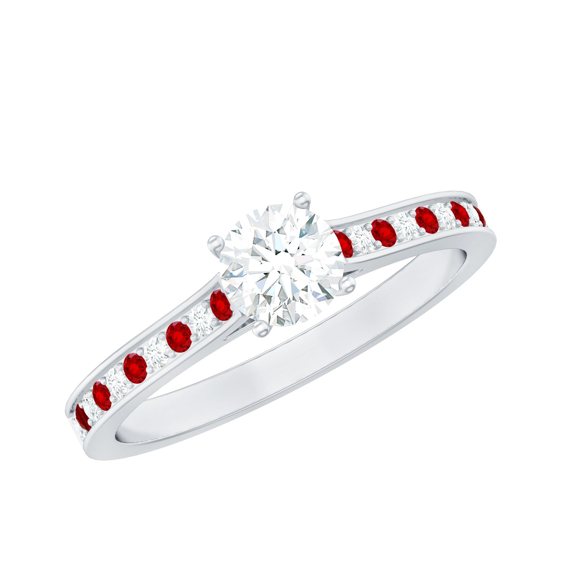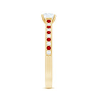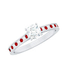 Make a lasting impression on her heart by presenting this Lab Grown Diamond Engagement Ring as a timeless token of your unconditional love. Features a 5 MM round shaped lab grown diamond, set in prong set in the center while the shank shimmers with the mesmerizing sparkle of small lab created ruby and diamond, placed alternatively for a contrasting touch. Crafted with proper care, the Solitaire Engagement Ring has certified lab rubies and lab diamonds that capture attention with their infinite shine and radiant brilliance. Make every moment special and memorable with this Diamond and Ruby Ring as precious as her smile. Whether you are planning a surprise proposal or selecting it together, this Lab Created Diamond Ring is a statement of love, values, and forever style. Designed to turn heads and capture hearts, this Classic Engagement Ring is a radiant reflection of your unique bond. Elegant, ethical, and endlessly breathtaking, it is the ring that begins your forever in the most unforgettable way.