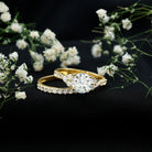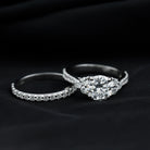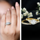 Elevate the charm of your big day with this Lab Grown Diamond Ring Set, a true tribute to love and lasting devotion. The 8 MM round lab grown diamond in prong setting sparkles brilliantly at the center, flanked by a trio of smaller diamonds on each side. To enhance the engagement ring further, there are round diamonds as side stones that beautifully complement its design. The wedding band makes a bold statement, adorned with round brilliant cut lab diamonds in a half eternity style. This Engagement Ring with Wedding Band is a perfect pick for celebrating any occasion joyfully. With its dazzling appearance, this Ring Set features EF color and VS clarity lab grown diamonds that shine even brighter. Win her heart with this stunning Marriage Ring Set that will elevate her fashion game. Redefine classic beauty while showcasing timeless elegance with this Engagement Ring Set, made from high-quality metal, a striking piece of jewelry that vividly expresses glitz and glamor.