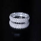 Showcasing unmatched beauty and brilliance, the Wedding Anniversary Band boasts a triple row design embellished with round cut lab grown diamond stones in the center row, securely set in prongs. The upper and lower rows are gracefully adorned with petite diamonds arranged in a zig-zag pattern. This Lab Diamond Wedding Band effortlessly enhances any outfit with its radiant charm. This Full Eternity Band features the sparkle of EF color and VS clarity lab-created diamonds, making your celebration even more memorable. This Wide Diamond Band Ring will arrive in a signature jewelry box along with a certificate of gemstone authenticity. Commemorate a special milestone with your partner using this exquisite Eternity Wedding Band. You can wear this Thick Diamond Band Ring solo for a chic and elegant appearance or layer it with another ring for a more customized touch.