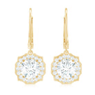 Make her eyes sparkle as brightly as these Diamond Halo Earrings. We designed these Dangle Drop Earrings to capture timeless elegance and charm, featuring an 8 MM round cut diamond (lab grown) in the center, set in prong setting. The center stone is surrounded by an art deco-inspired diamond halo and crafted with fine attention to detail, giving these Drop Diamond Earrings a graceful and feminine touch. These Art Deco Earrings are curated with lever back closure, ensuring both comfort and security, ideal for all-day wear. To guarantee premium craftsmanship, these affordable April Birthstone Earrings come with a certificate of authenticity.