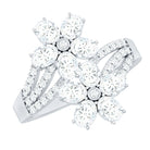 Do not settle for an ordinary engagement ring when you can wear a masterpiece on your finger. This Flower Engagement Ring is adorned with two breathtaking floral motifs each crafted with five oval shaped lab grown diamonds surrounding the dainty bezel set stones in the center. The split shank is also decorated with smaller diamonds, ensuring the Cocktail Engagement Ring shines from every angle. Whether you are dressing up for a glamorous evening event, a wedding reception, or a festive celebration, this Diamond Ring for Women will be the ultimate finishing touch to your outfit. No matter how you style it - solo or with other jewelry pieces, this beauty guarantees all eyes will be on you.
