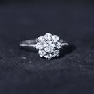 Unlike a traditional solitaire, the clustered floral layout produces layered sparkle. Light reflects from multiple directions across the petal-like arrangement, creating dimension and a gentle, distributed brilliance.