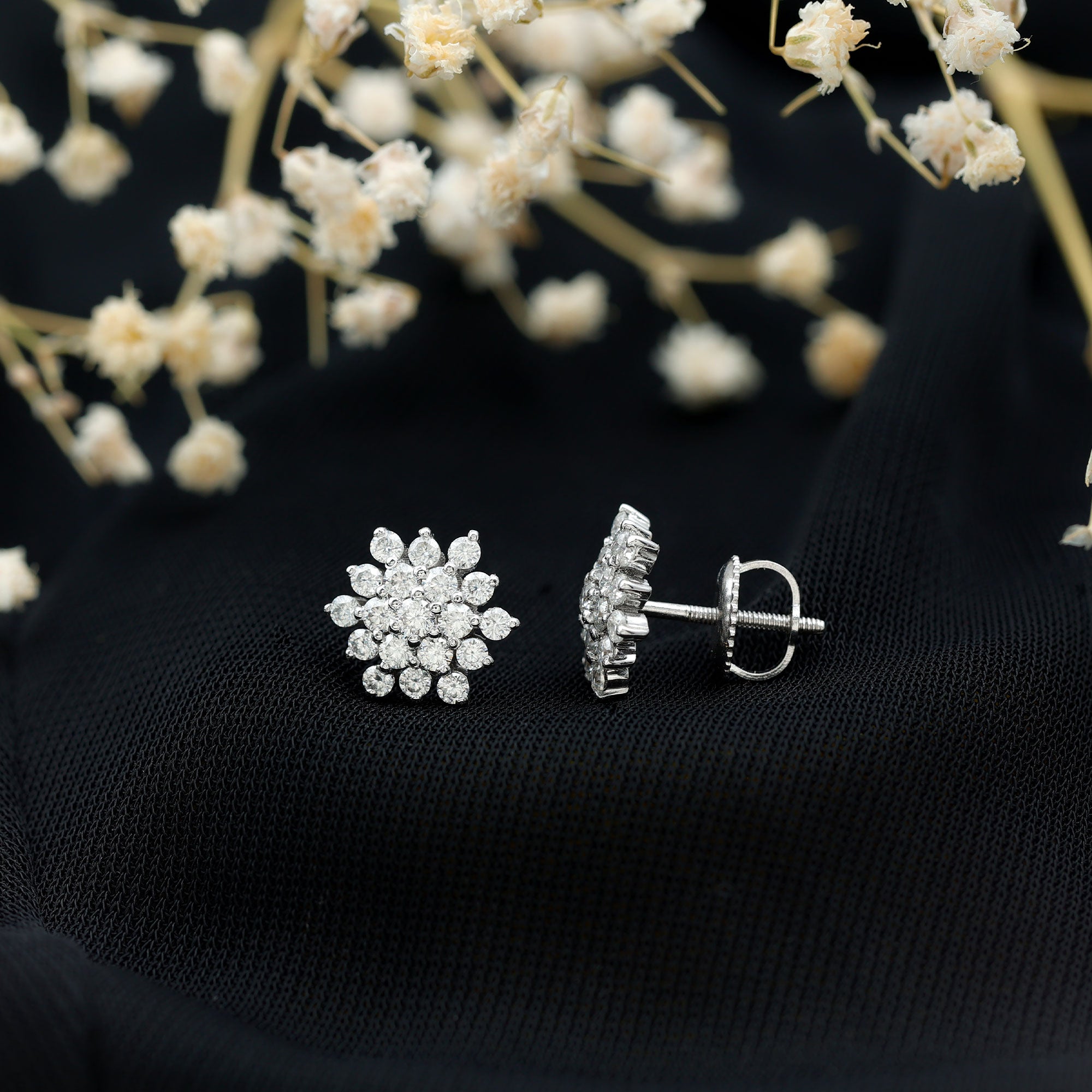 Certified Lab Grown Diamond Flower Statement Earrings