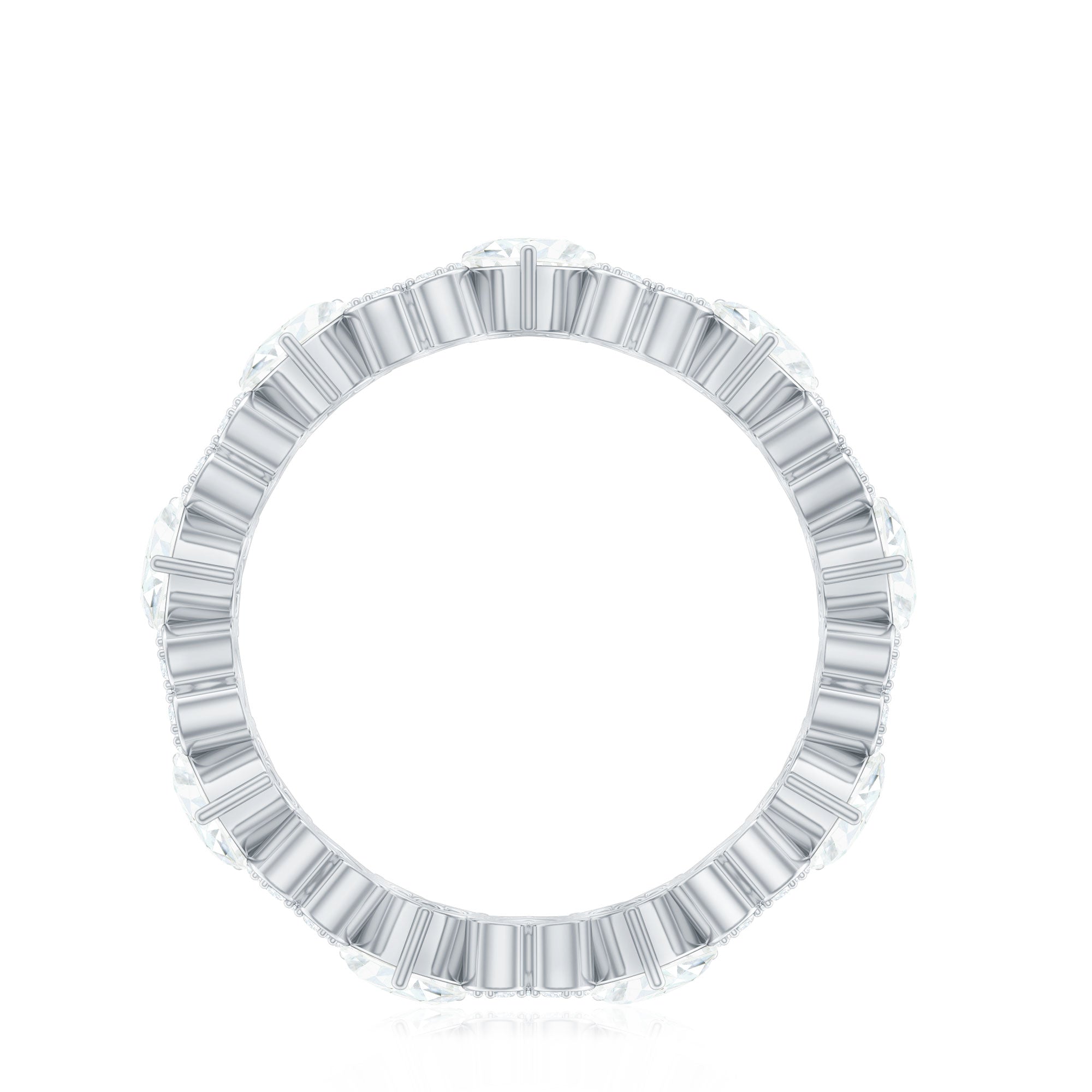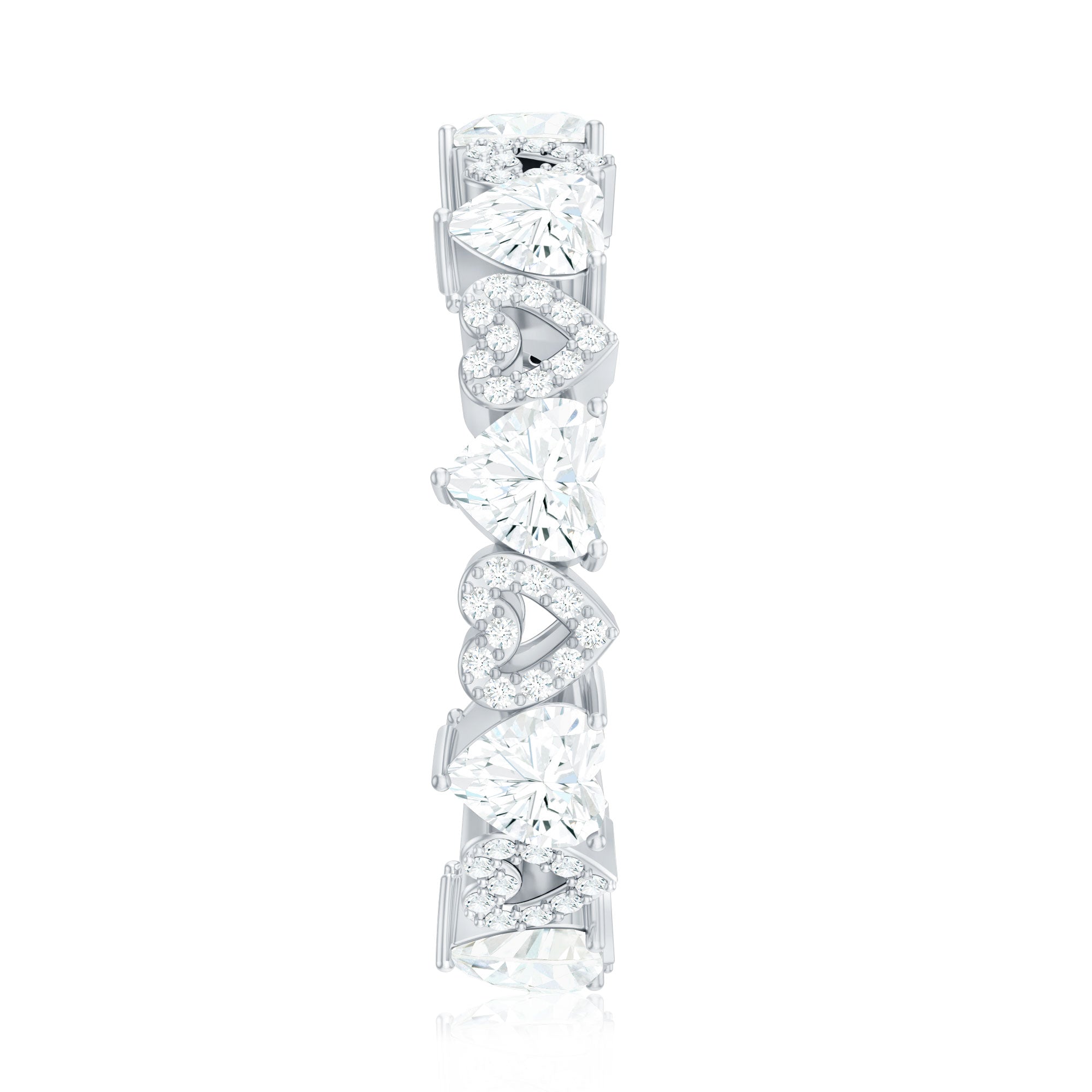 This Diamond Eternity Band Ring is curated to symbolize eternal love, where every heart and gemstone tells a story of forever. The design features heart shaped lab made diamonds and open heart shaped motifs adorned with small round cut diamonds, both the elements are set in an alternating pattern which adds a unique contrast of sparkle and elegance. This Full Eternity Ring ensures a seamless circle of beauty, making it a timeless treasure that radiates grace from every angle. This Heart Wedding band is a versatile statement piece that can be worn solo for a sophisticated and elegant look or stacked with another ring to create a personalized and stylish stack.
