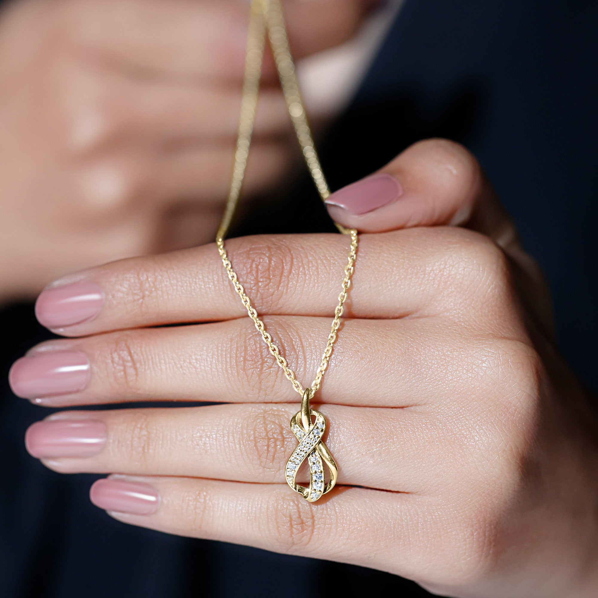 Rosec Jewels Diamond Infinity Necklace reflects the beauty of eternity and a love that never ends just like infinity. The design of this Forever Necklace features a flowing ribbon-like smoothness that gracefully curves into the shape of an infinity symbol, nestled with round petite diamonds of EF-VS quality in pave setting. Perfect for everyday wear elegance or special occasions, this Lab Grown Diamond Pendant is a meaningful gift for anniversaries, birthdays, Valentines Day, or any moment when you want to remind someone of your everlasting love and devotion.