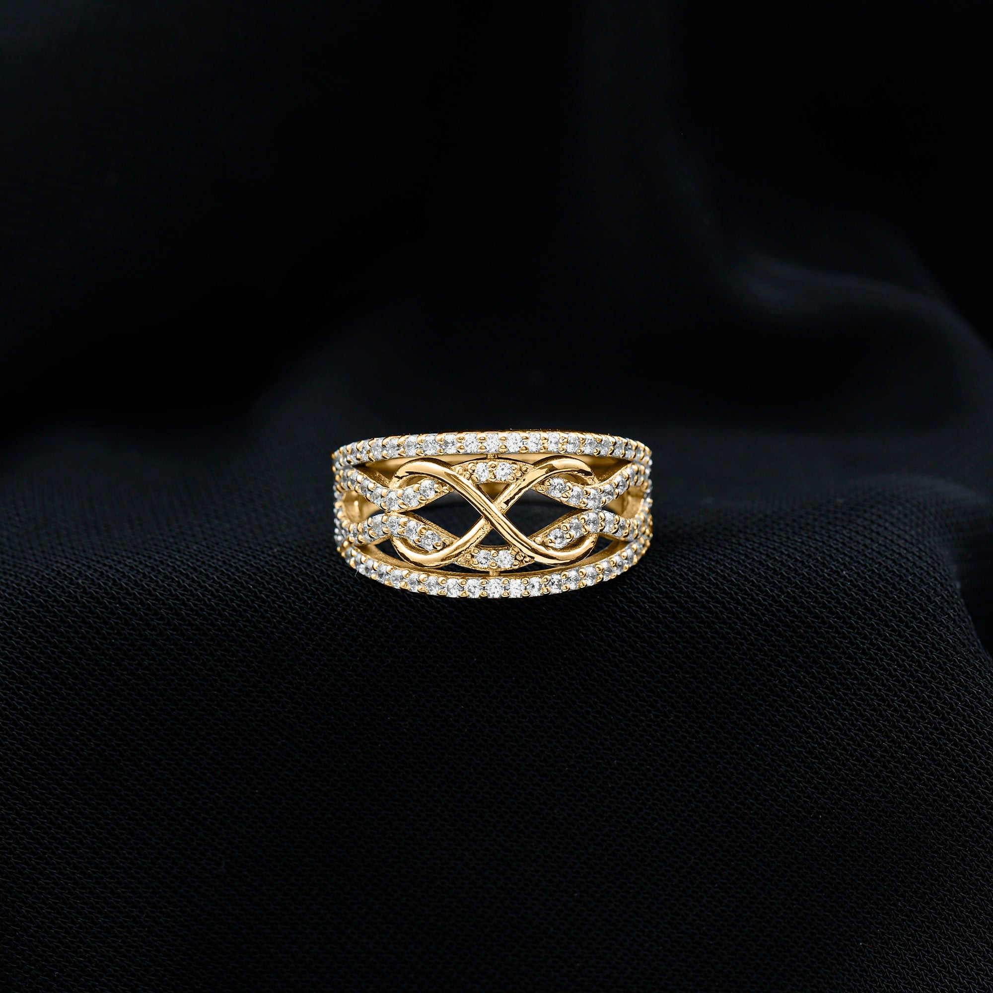 Grace her hand with this Diamond Wedding Anniversary Band - a masterpiece that represents your eternal love. This beautiful Wide Band Ring features four diamond-encrusted rows, the center two rows are in a wave-like pattern interlocked with a smooth metal infinity symbol. All the EF-VS Quality diamonds (lab grown) are set in secure prongs for a safe and modern look. Whether it is your 1st or 50th Anniversary, this Infinity Band Ring will make her feel cherished. To make your special moment even better, this Diamond Band comes in a premium storage box, ensuring a luxurious presentation for your gift.