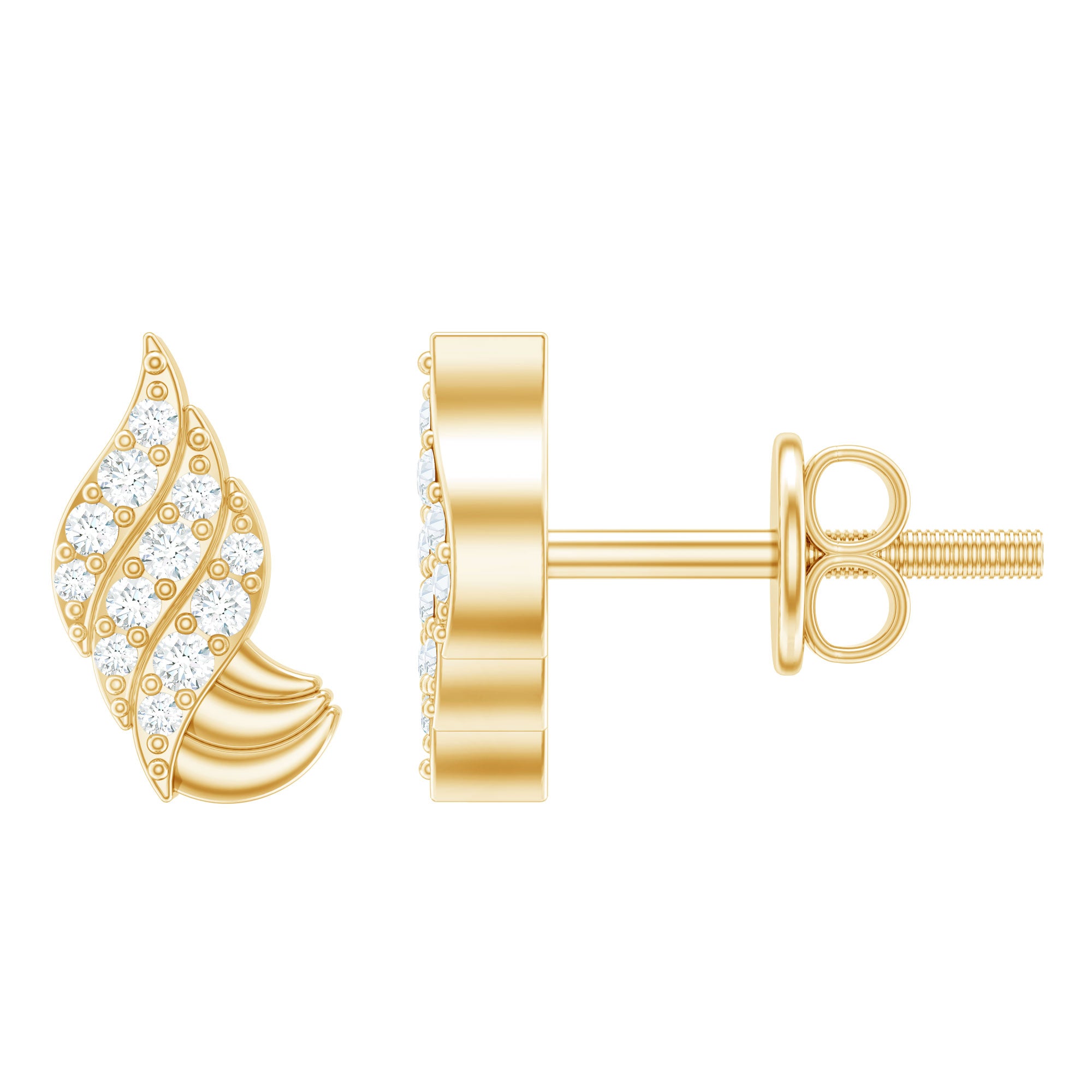 Natures beauty is captured in these Diamond Leaf Stud Earrings, that are all about elegance with a modern twist. These Minimalist Earrings sparkle with round cut lab grown diamonds of EF-VS Quality. Their unique wavy structure makes these Diamond Earrings a piece of eye-catching jewelry, secured with screw back closures. Timeless, elegant, and full of charm these Diamond Leaf Earrings are more than just a piece of jewelry, they are a statement of style and grace. Whether you are heading to the office, dressing up for a special occasion, or simply elevating your everyday style, these Simple Earrings will give you the perfect look.