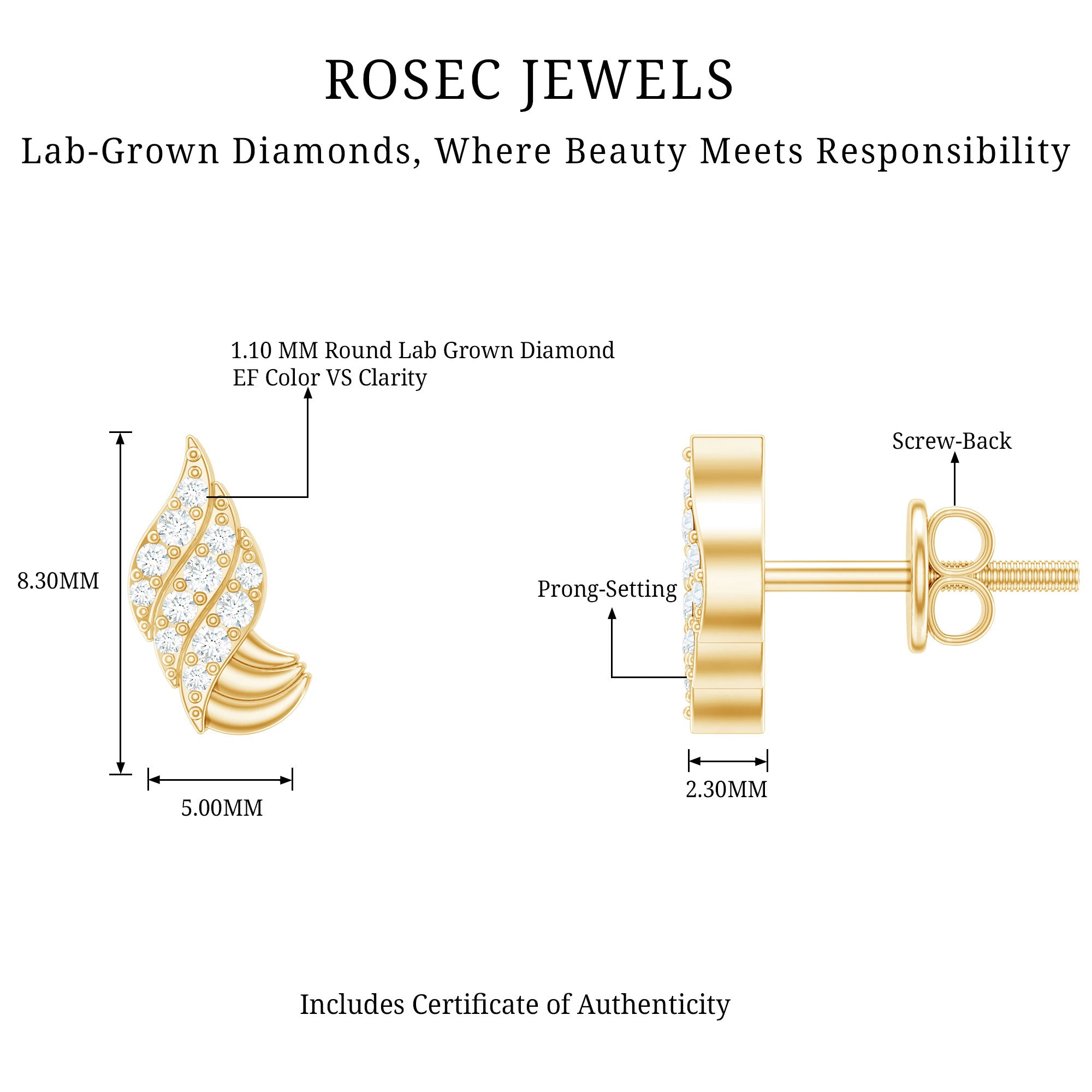 Certified Lab Grown Diamond Leaf Stud Earrings With Screw Back