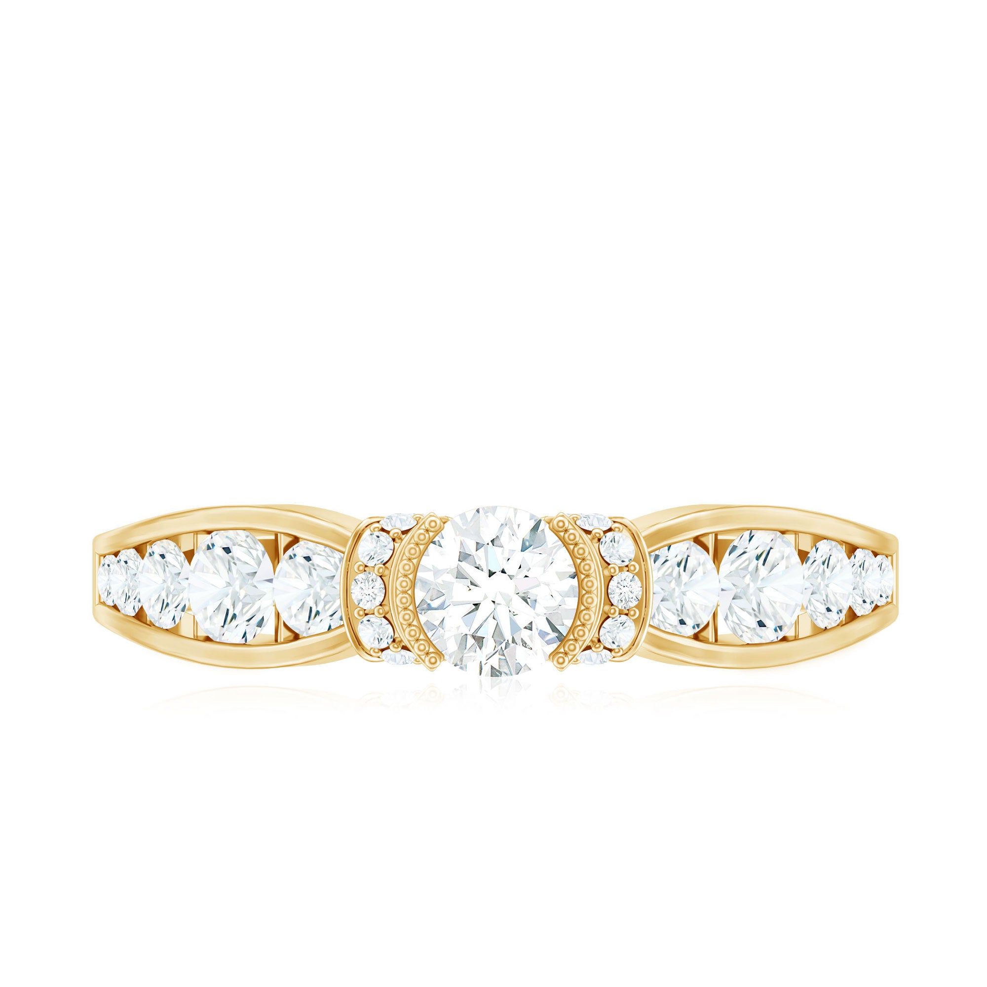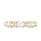 Rosec Jewels Diamond Engagement Ring is a true masterpiece, designed for the one who deserves the best. The center stone is a 4 MM round cut lab grown diamond that sits with a unique collar pattern, handcrafted from an arc of beadwork and smaller diamonds that gently hug the center stone. This Round Diamond Ring features side stones placed over the band in a graduated pattern, creating a seamless flow of light and beauty. With playful yet profound symbolism, this Minimalist Ring reflects your unique relationship and represents your love story. The focal stone is an EF-VS Quality Diamond, it showcases exceptional clarity and brilliance, making it a perfect expression of everlasting love.