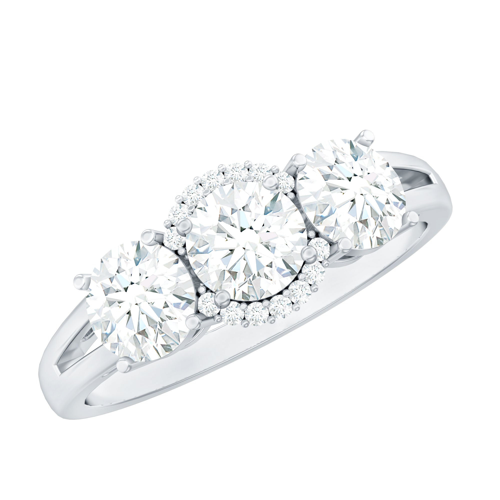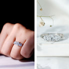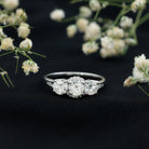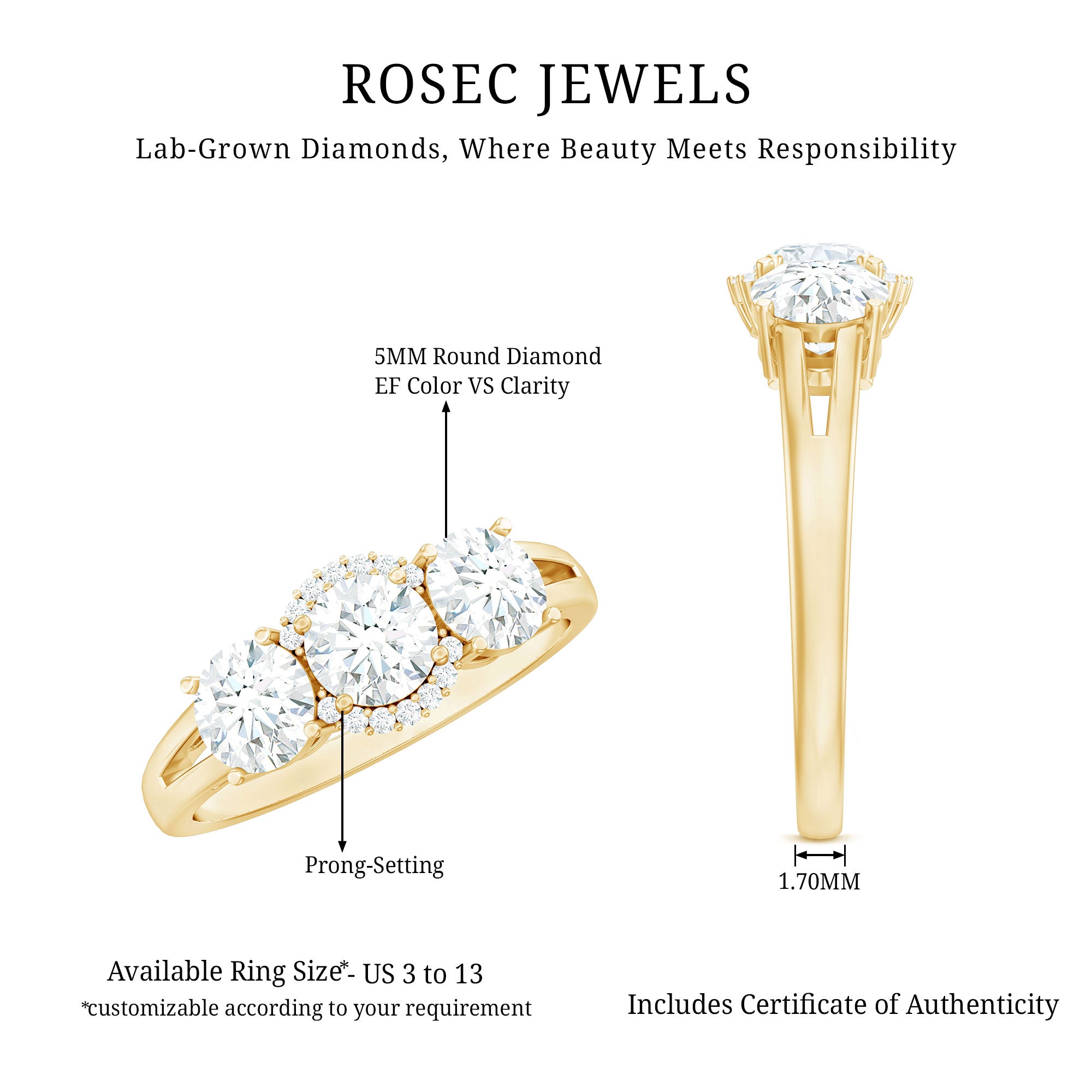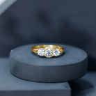 Step into the glamour of diamonds with this stunning Past Present and Future Ring, designed to make you the center of attention. This 3 Stone Engagement Ring features three dazzling round cut 5 MM lab grown diamonds set in safe prong setting, flanked by smaller stones that are equally radiant. The split shank is made of plain metal, adding a touch of sophistication and ensuring smooth wear. If you are looking for a Diamond Engagement Ring that embodies romance, strength, and everlasting love, this is the perfect choice. It is not just a ring; it is a statement representing love that is rare, beautiful, and timeless.