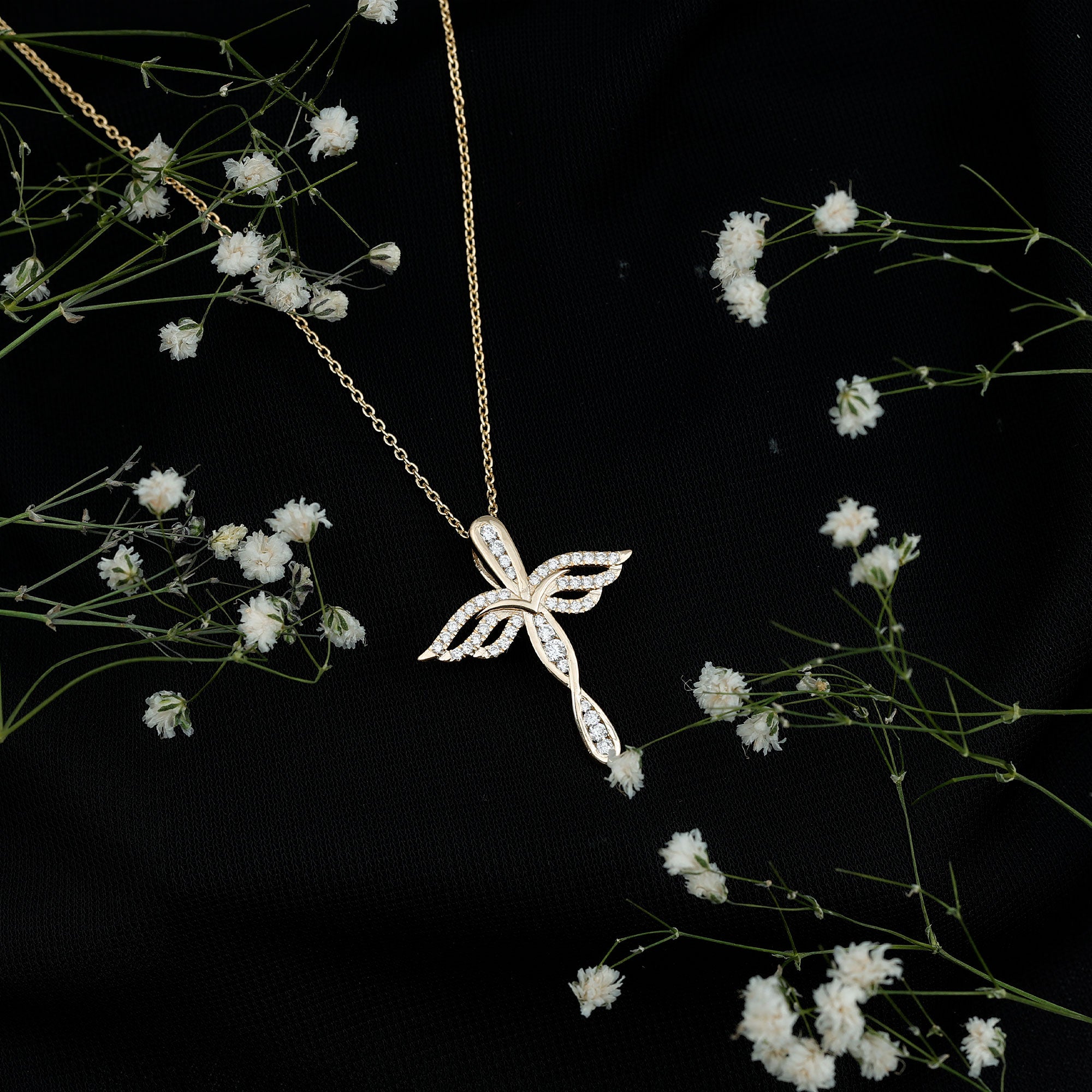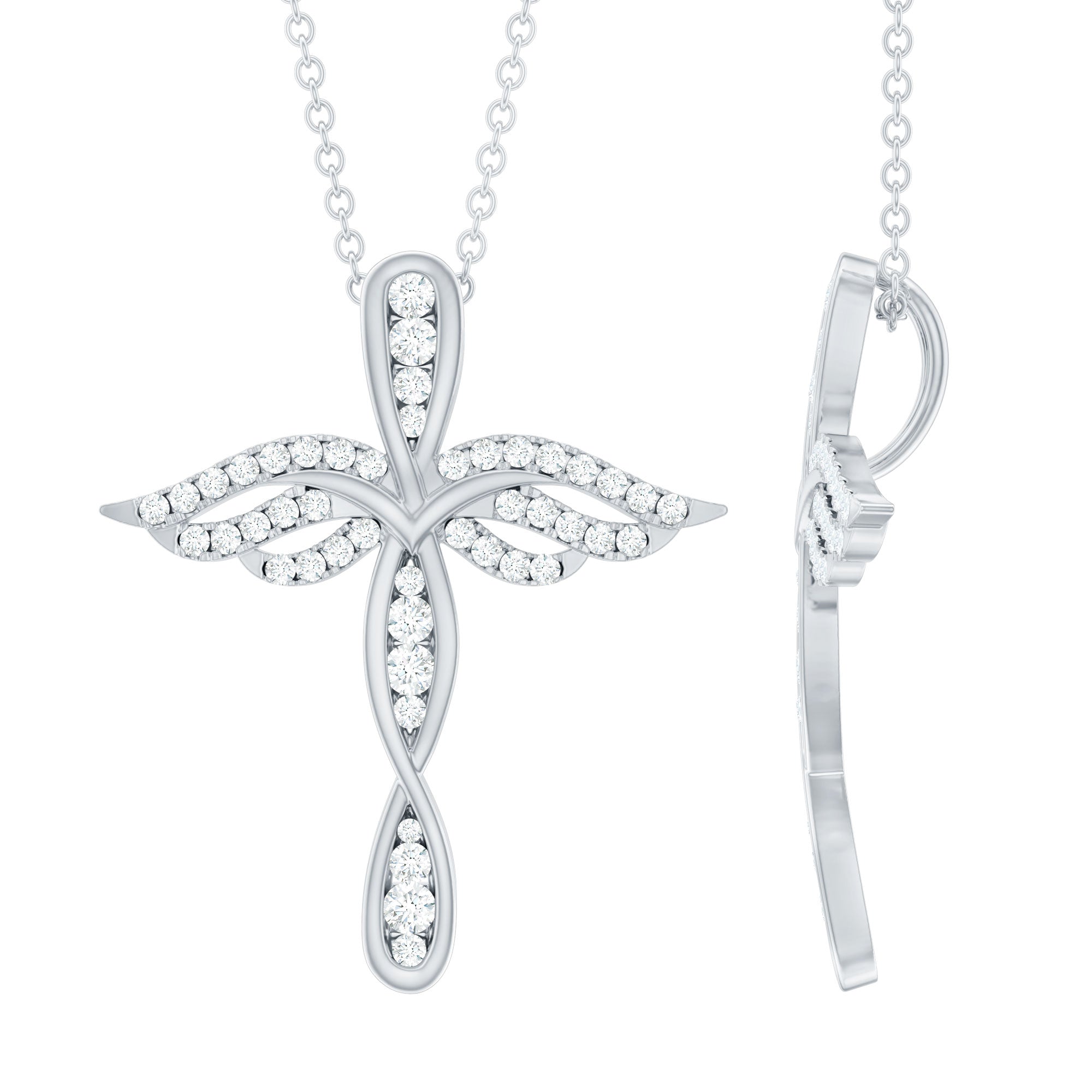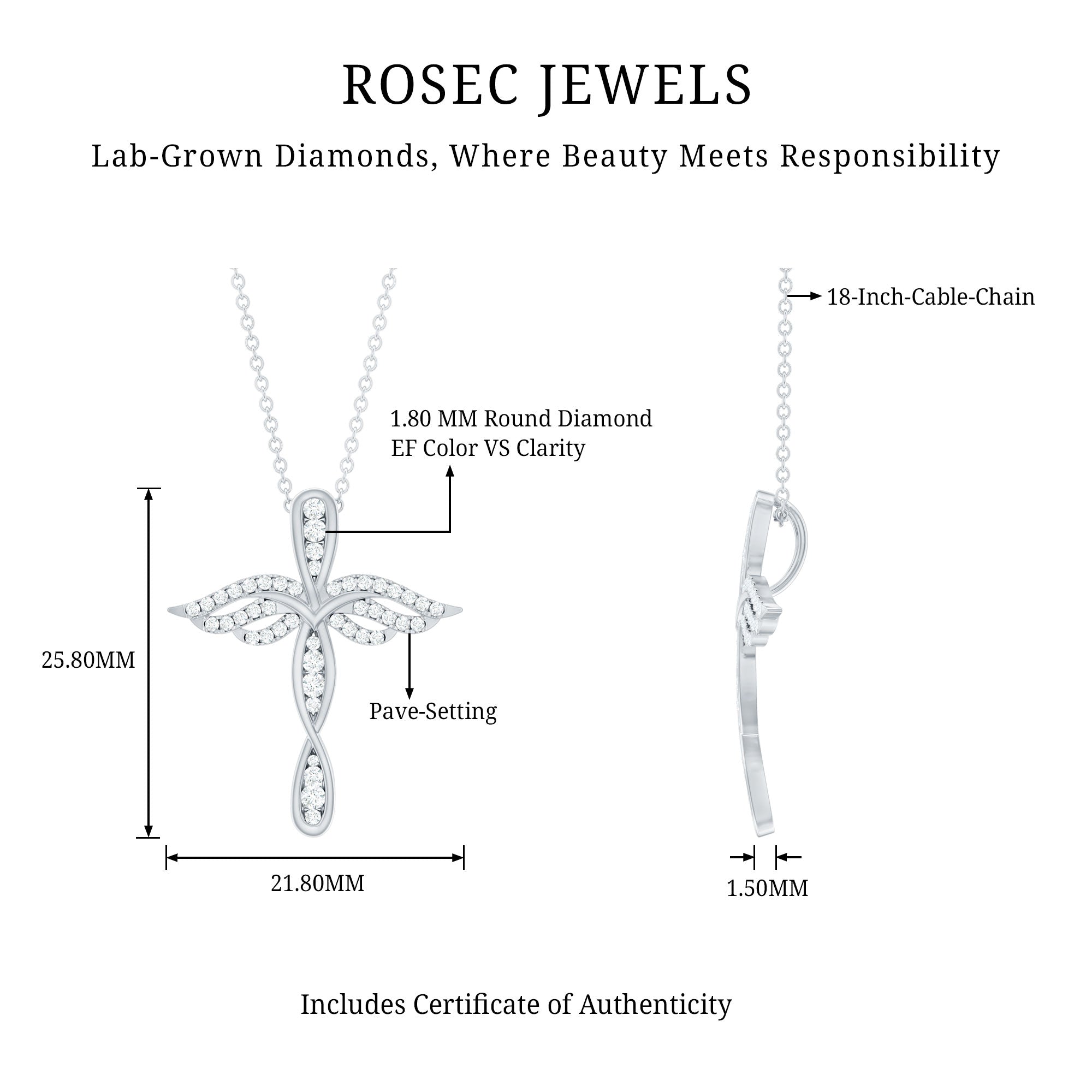 Certified Lab Grown Diamond Prong Set Cross Angel Necklace