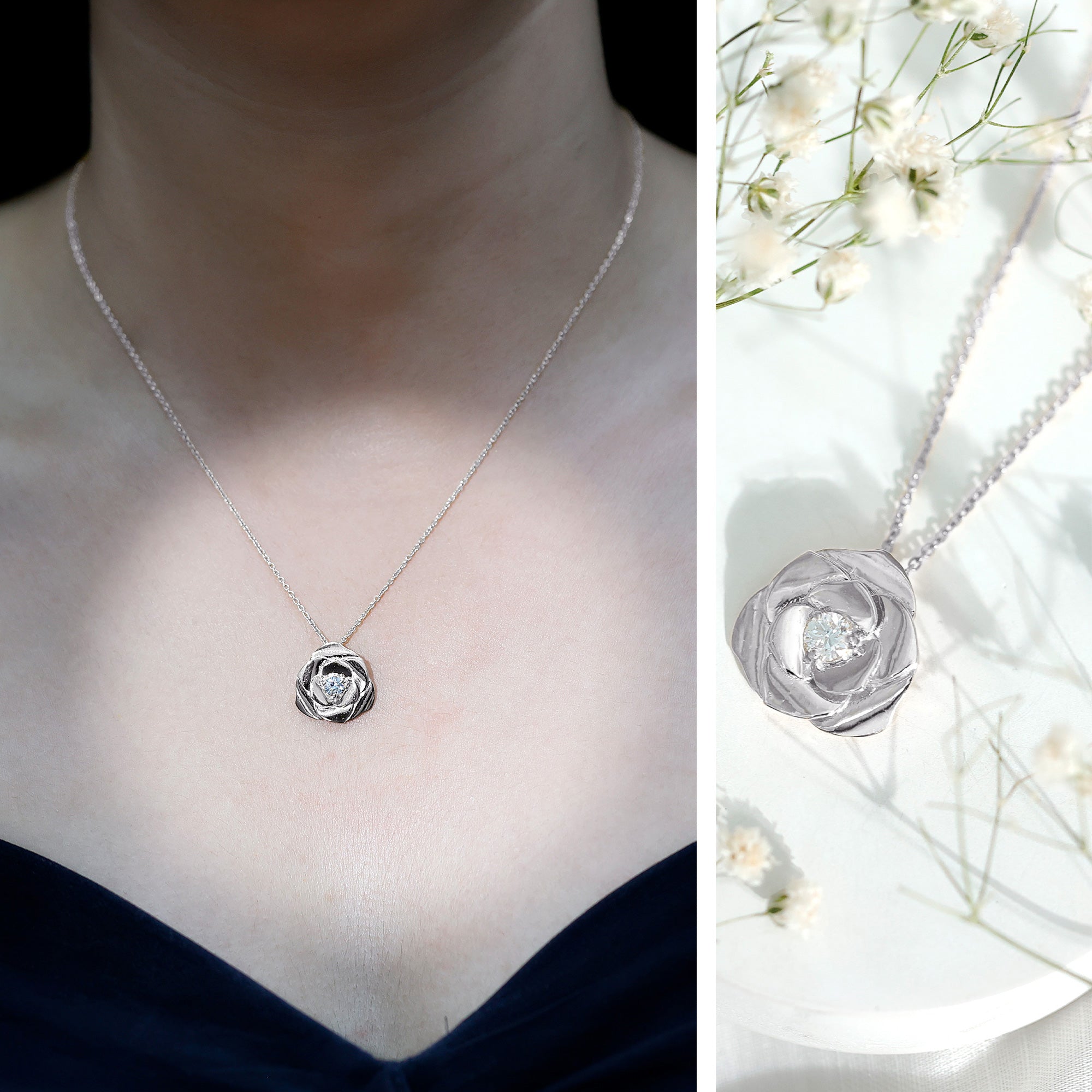 Certified Lab Grown Diamond Rose Pendant Necklace