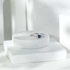 Complete your promise with a ring that sparkles as much as your love. Handcrafted in top-notch metal, this Diamond Heart Ring features a classic crossover shank adorned with small round cut diamonds, representing the intertwining of two souls. The center is graced with two heart shape gemstones one is lab grown diamond and the other is blue sapphire of 5 MM each, set side by side in prong setting. You can present this as a Promise Ring, an anniversary gift, or a romantic surprise, this Diamond and Sapphire Ring beautifully marks lifes most cherished moments. The lab made diamonds ensure affordability while being eco-friendly, offering the same brilliance and durability as natural stones. Also, our fine ring comes with a certificate of authenticity.