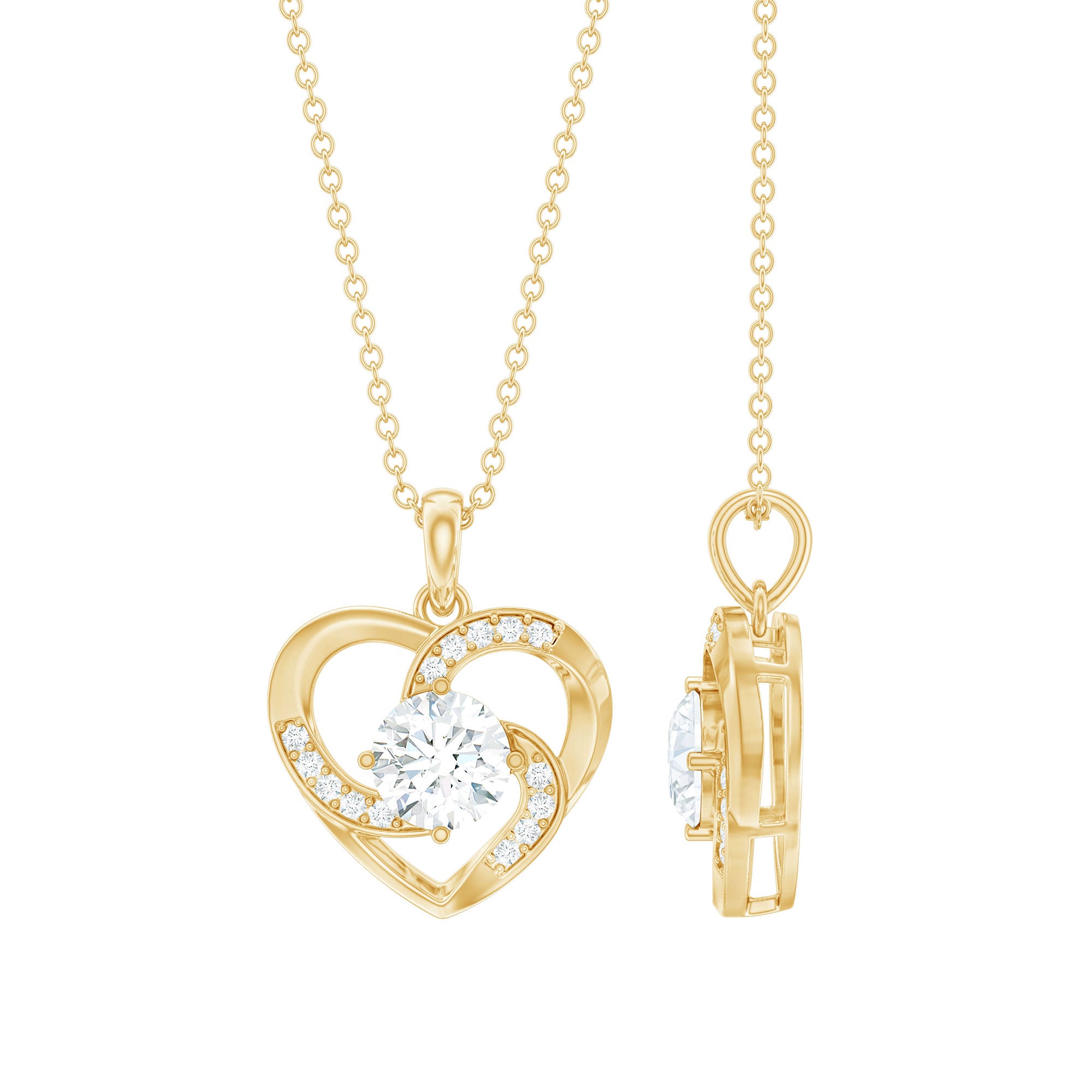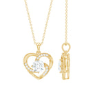Surprise her with elegance embodied in this unique Lab Grown Diamond Necklace. This Heart Pendant features a 6 MM Round Shape Diamond (Lab Grown) as a centerpiece set in a prong setting, the open heart shape is accentuated by delicate gemstones. This EF-VS quality Diamond Heart Necklace reflects timeless beauty while aligning with Rosec Jewels commitment to environmental responsibility. It comes packaged in a premium storage box, making it ideal for gifting on special occasions like anniversaries, birthdays, Mothers Day, or Valentines Day. A gift as unique and radiant as your loved one.