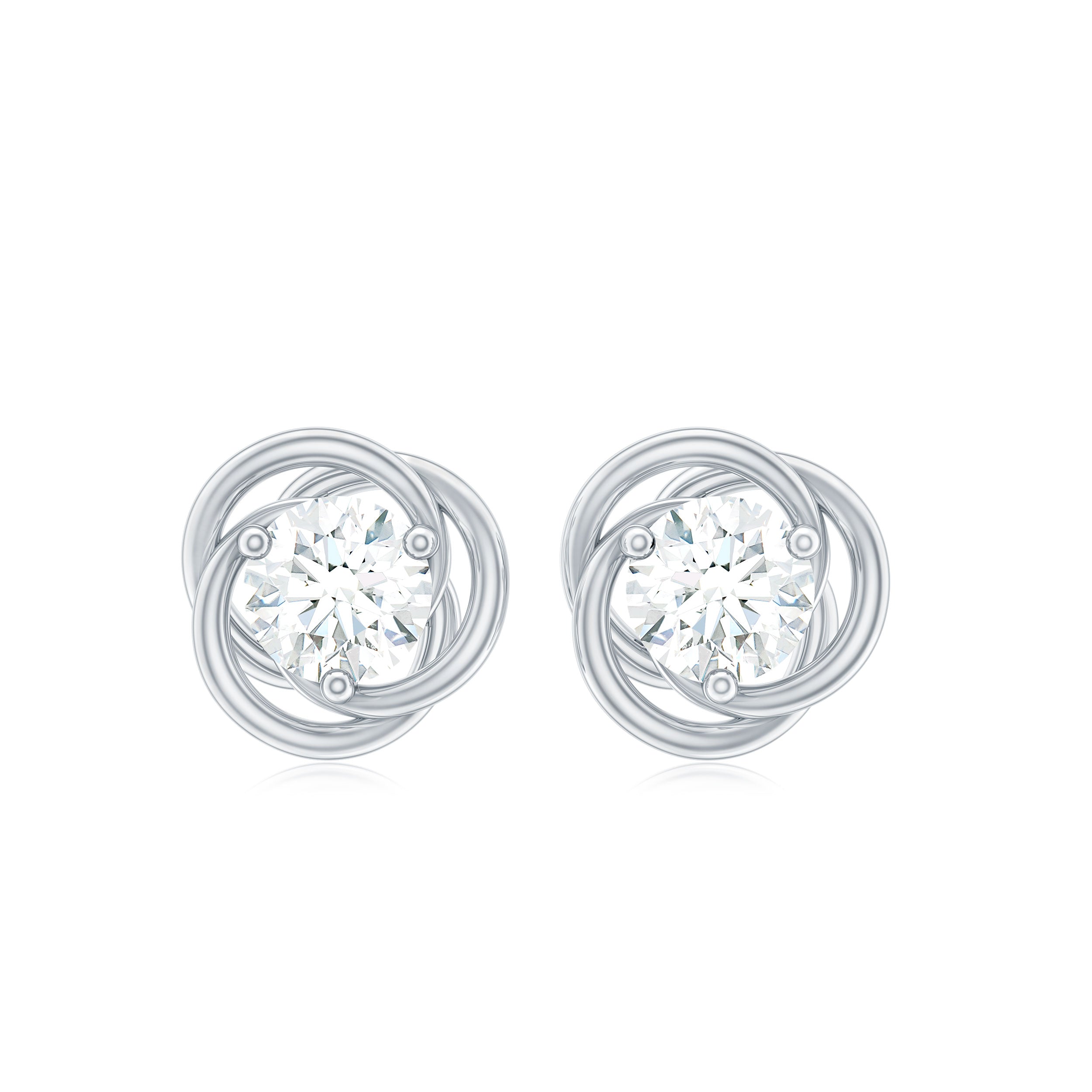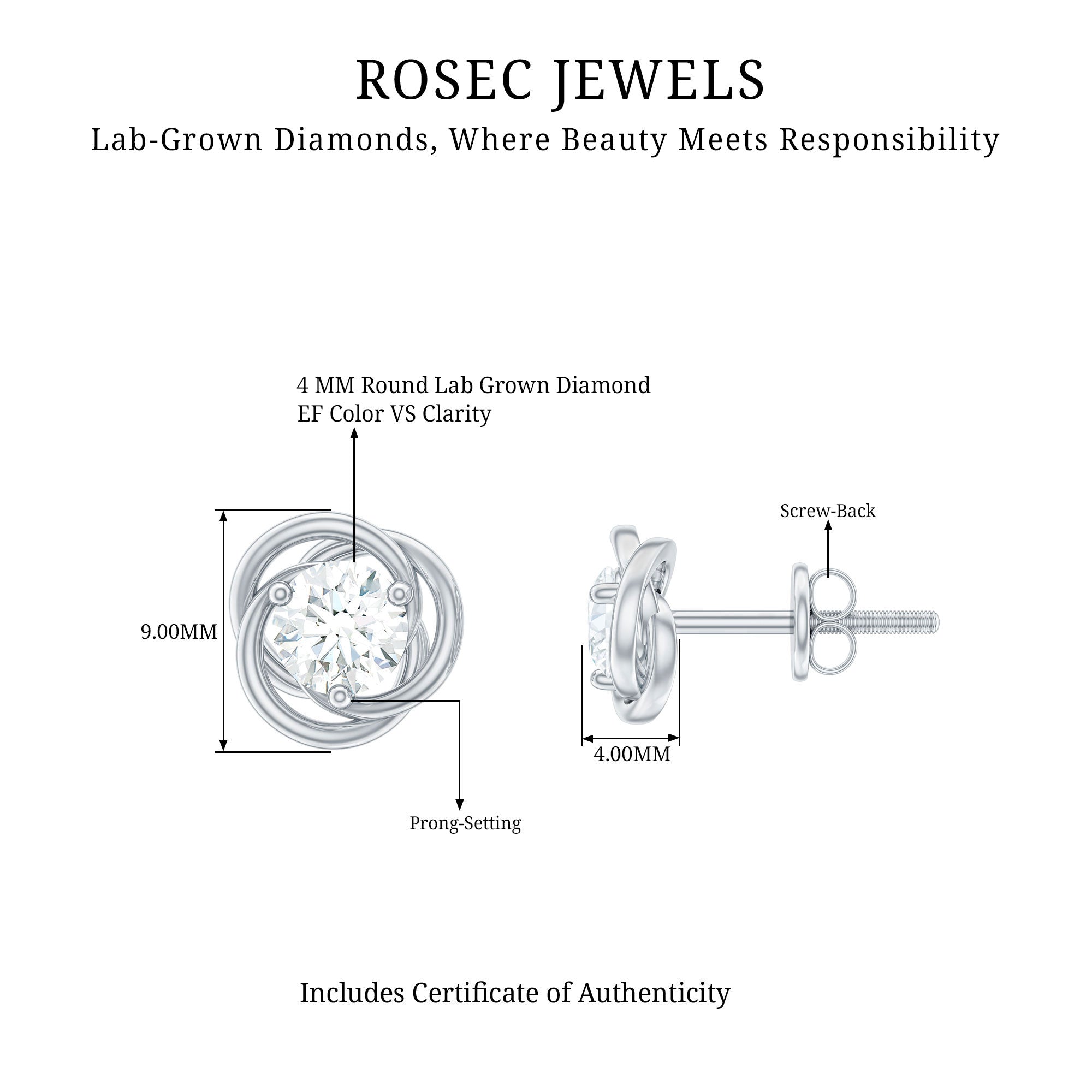 Make the celebration of love special with these Swirl Diamond Earrings handcrafted by Rosec Jewels. These Studs feature Round Shape Lab Grown 4 mm Diamond in Prong Setting in the center of the Metallic Swirl Design. These Solitaire Studs dazzle with EF-VS Quality Diamonds which will compliment the celebration. Make her astonished with these Diamond Solitaire Studs which are unique to her. These Lab Grown Diamonds Studs will be shipped in a premium-quality signature jewelry box which makes it ready to gift to your special one.
