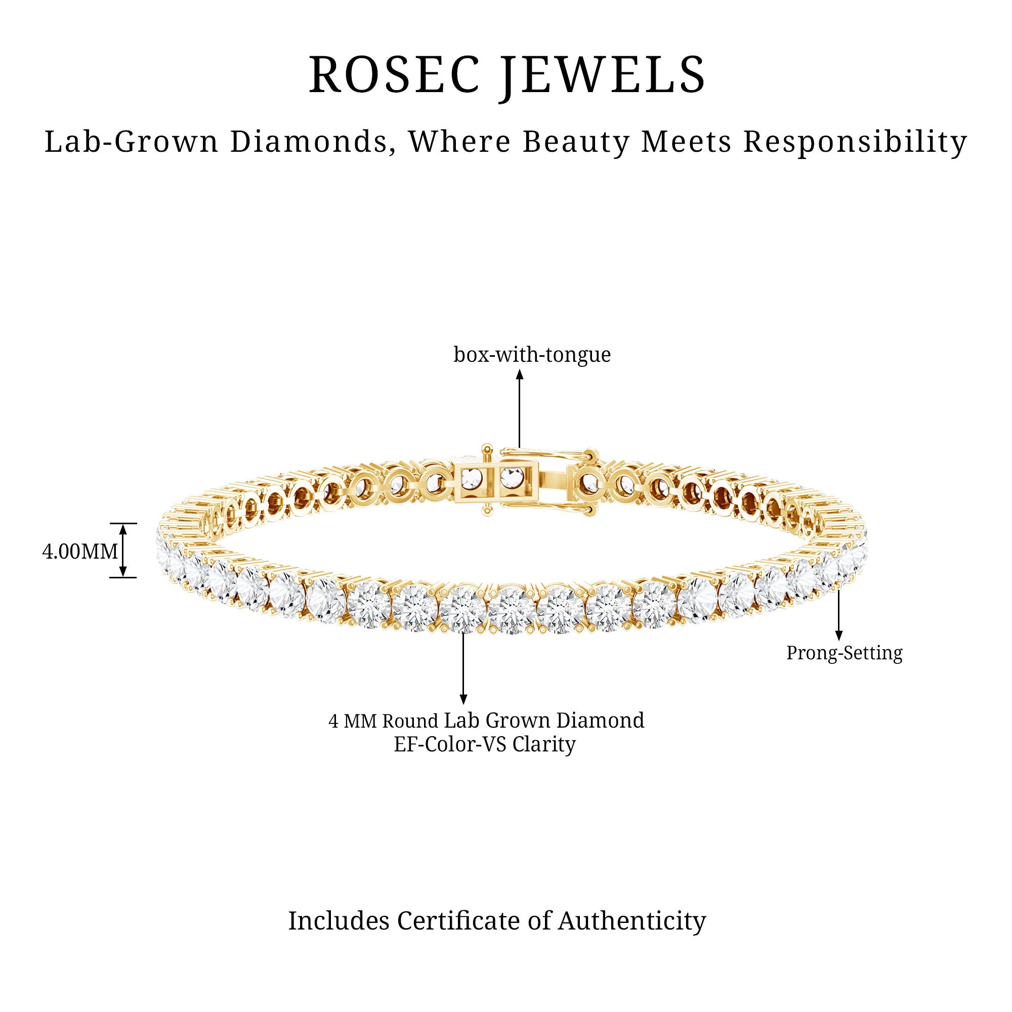 Every girl hopes to receive a stunning Lab Diamond Tennis Bracelet from her partner. This is your opportunity to impress her with 11 carats of dazzling diamonds. We have set 44 round brilliant diamonds, all EF color and VS clarity, in a high quality metal setting. She will feel truly special wearing it. These beautiful lab-grown diamonds blend classic elegance with modern innovation. The prong set round cut stones create a smooth, flowing line that embodies both traditional grace and contemporary luxury, making this Womens Tennis Bracelet a standout piece. Our dedication to lab-grown diamonds showcases a modern take on luxury, ethical, sustainable, and simply stunning. Ideal for both significant occasions and everyday elegance, this Wedding Bracelet for Brides goes beyond trends. Its adaptable design easily shifts from the boardroom to evening soiree, providing an investment in lasting beauty that will be treasured for years. Whether for yourself or as a gift for someone special, this Stackable Bracelet is more than just an accessory - its a symbol of refined taste and mindful luxury.