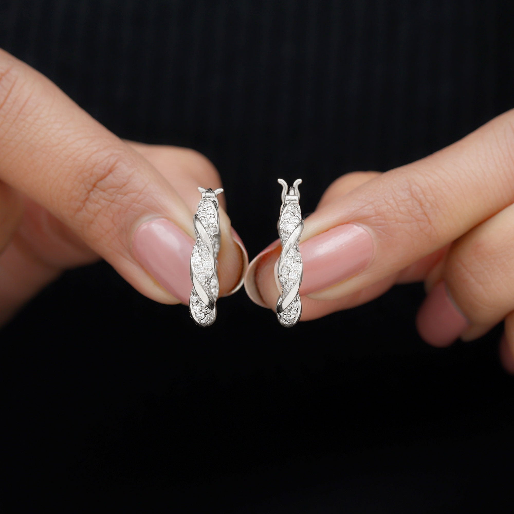 Add a stylish twist to your everyday look with these Lab Grown Diamond Earrings. Designed in a unique twisted style, these Hoop Earrings offer a modern take on a classic favorite. The elegant curves catch the light beautifully, while the dainty Lab Grown Diamond stones add just the right amount of sparkle without being too bold. Each earring is carefully crafted with EF-VS Quality Lab Diamond stones that shine bright, giving you all the brilliance of natural gemstones with a more conscious, sustainable touch. The twisted design adds texture and movement, making these Lab Diamond Earrings stand out in the most subtle, sophisticated way. They are comfortable and easy to wear, perfect for day-to-night styling. Whether you are heading to the office, a casual brunch, or a night out, these Diamond Hoop Earrings (Lab Diamond) will effortlessly elevate any outfit. They come beautifully packaged in a jewelry box, making them a great gift for birthdays, anniversaries, or simply to treat yourself. Classic, elegant, and just a little different, these Cultured Diamond Earrings are made for women who like their jewelry to have a bit of personality. Easy to pair, hard to miss, and sure to become a go-to piece in your collection.