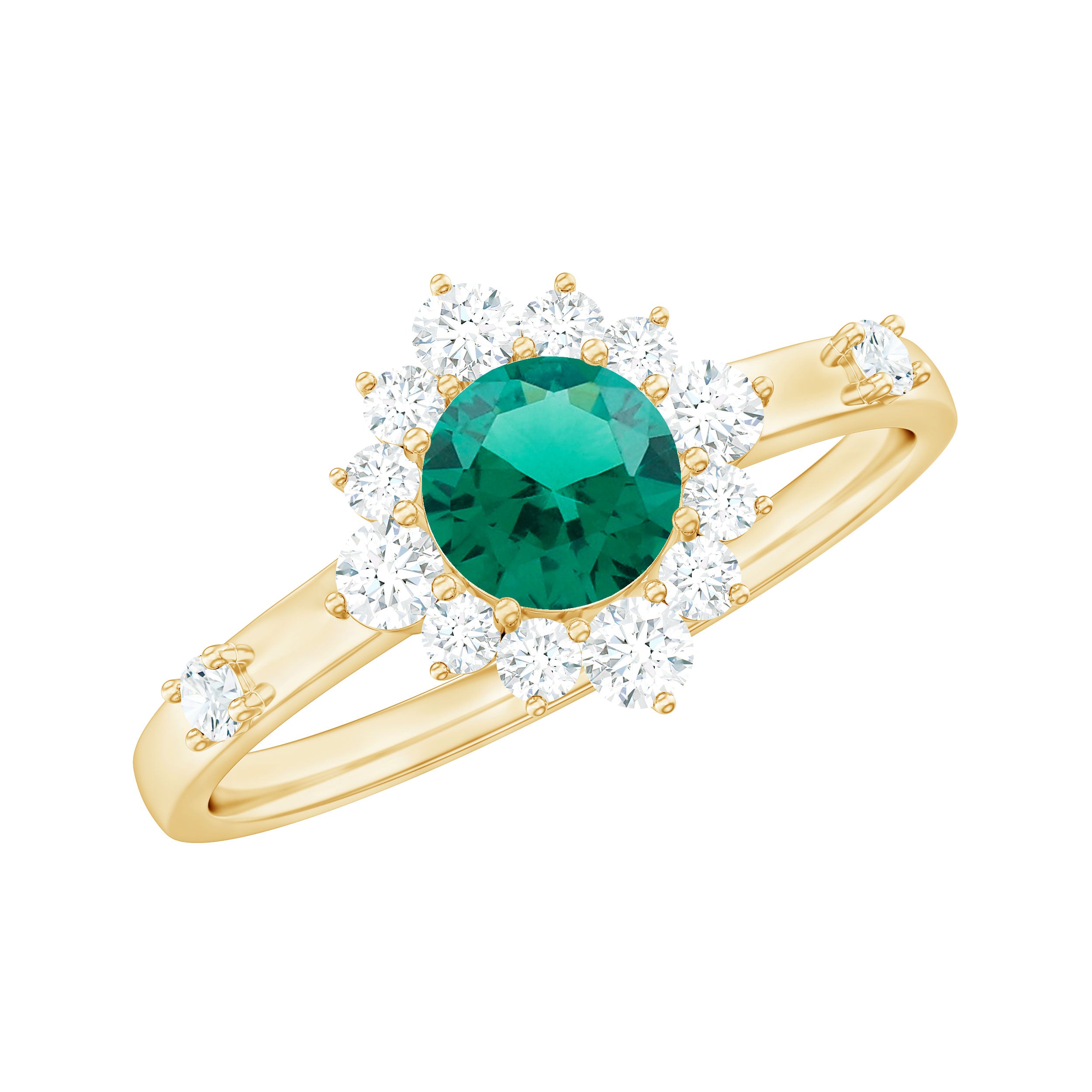 Certified Lab Grown Emerald Classic Engagement Ring with Diamond