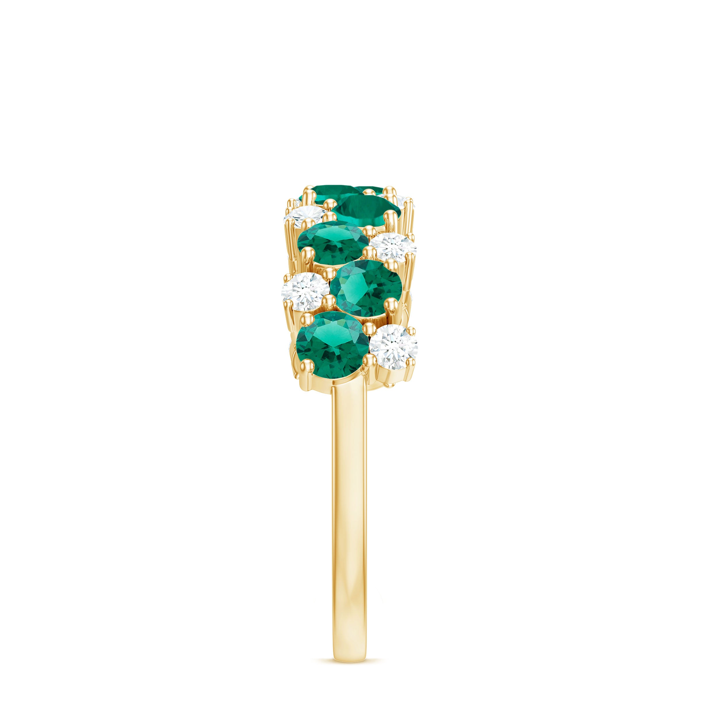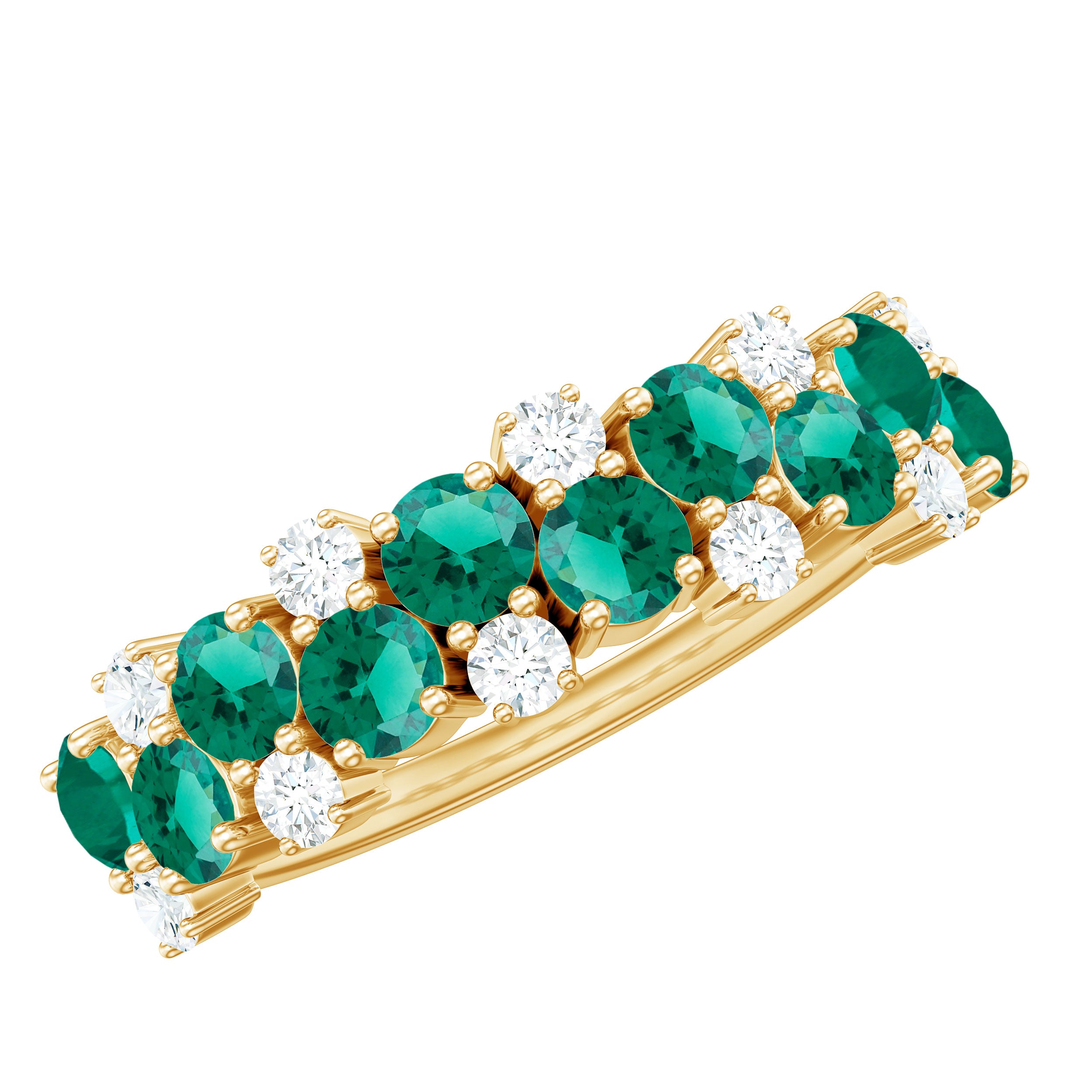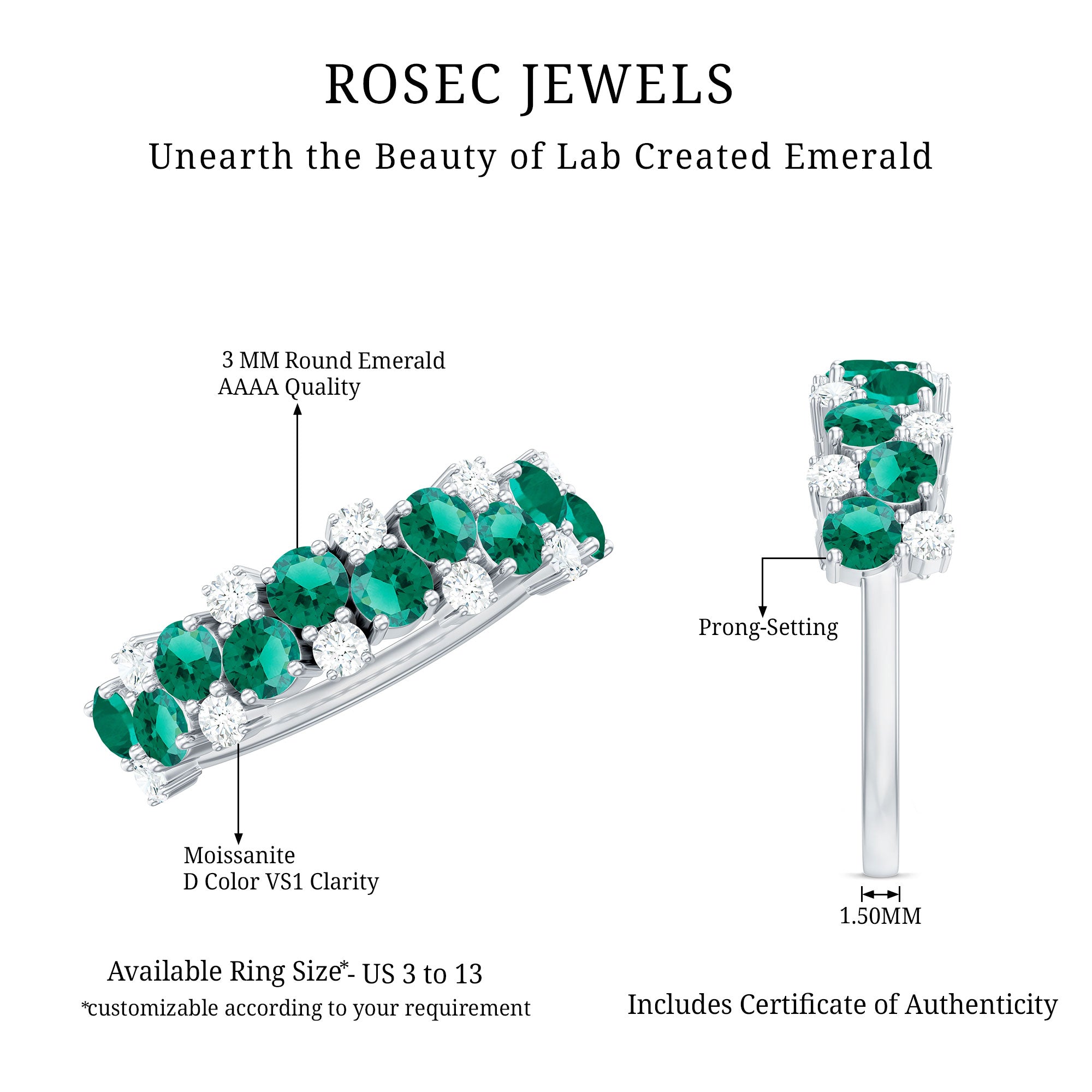 Certified Lab Grown Emerald Cluster Wedding Band with Moissanite