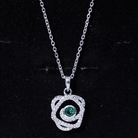 Discover the timeless charm of our Emerald Flower Pendant Necklace, made from stunning 14k white gold plated sterling silver. Embellished with sparkling moissanite stones and a vibrant emerald, this Floral Necklace is crafted to leave a lasting impression and elevate any outfit. The pendant showcases a graceful floral design, featuring a bezel set 4 MM round cut lab-created emerald at its center, surrounded by small moissanite gems set in a unique metal frame. With its subtle floral grace, this Emerald and Moissanite Necklace beautifully enhances your individual style. The deep green hue of the emerald radiates elegance and charm, making it the perfect accessory for any occasion. This Unique Emerald Necklace is suitable not only for everyday wear but also for cocktail parties as a stylish fashion statement, as a thoughtful gift for birthdays, anniversaries, or Valentines Day to someone special, or even worn on your wedding day for a stunning contrast. Elegant, timeless, and unforgettable - this Flower Locket Necklace is designed for those who want to shine in their own unique way. Treat yourself or a loved one to this truly exceptional piece of jewelry.