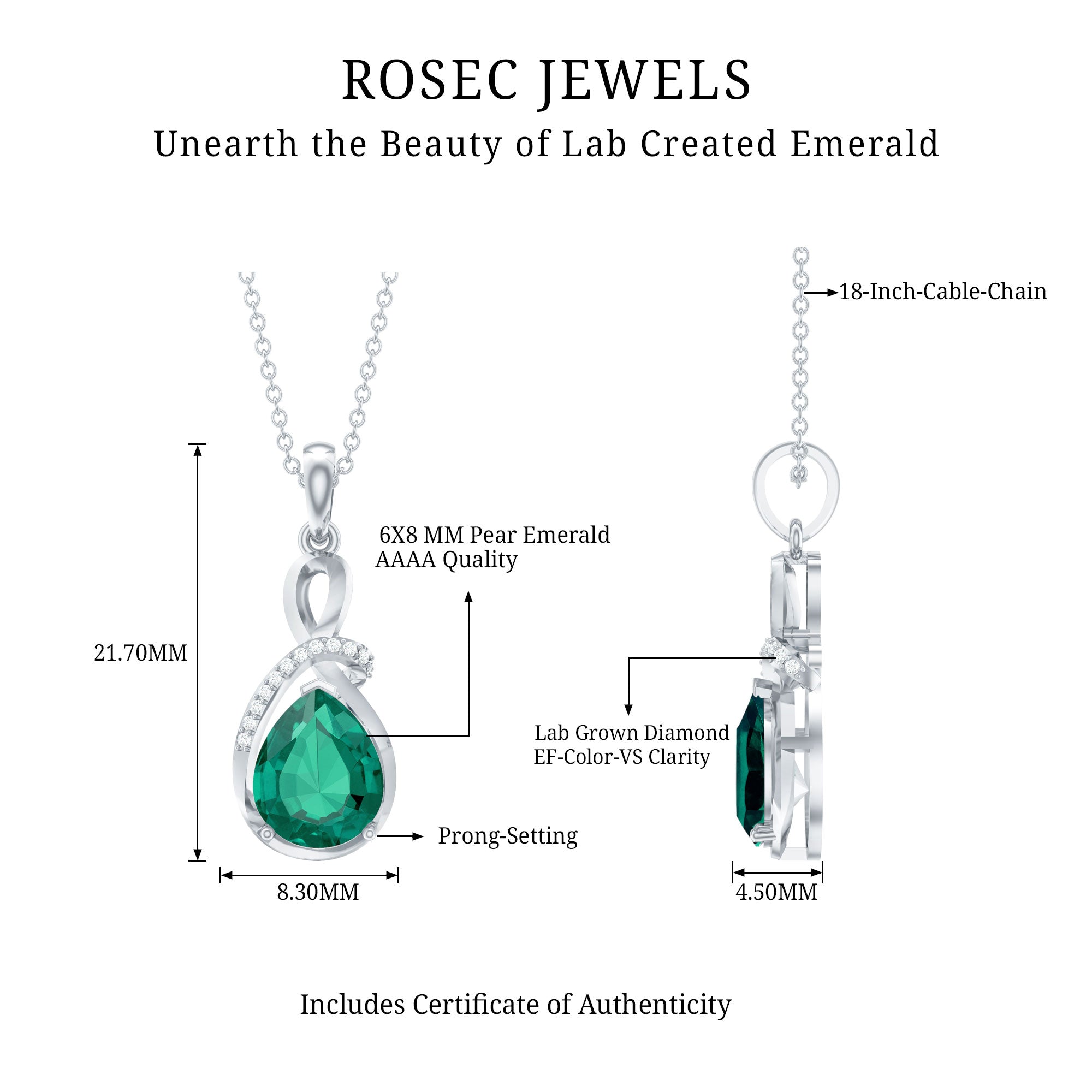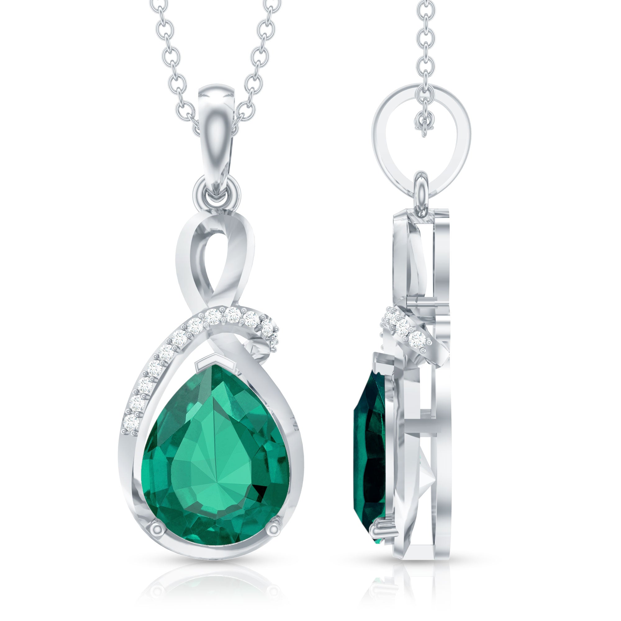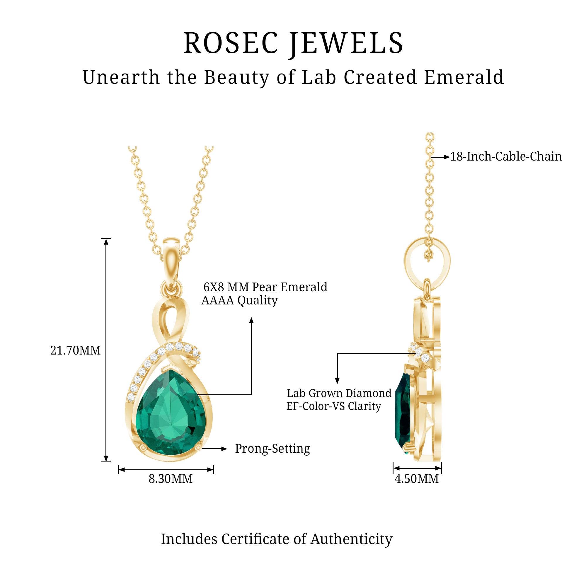 With a hint of royalty here is the Emerald Necklace Pendant. The pendant is embedded with a 6x8 mm pear shape emerald in the prong setting with round shaped diamonds on the edge. This Teardrop pendant adds grace to the outfit with its Aaaa-quality Lab-grown emerald. The Emerald Diamond Pendant will adorn the neckline with the grace of green gemstone and the elegance of sparkling diamond.