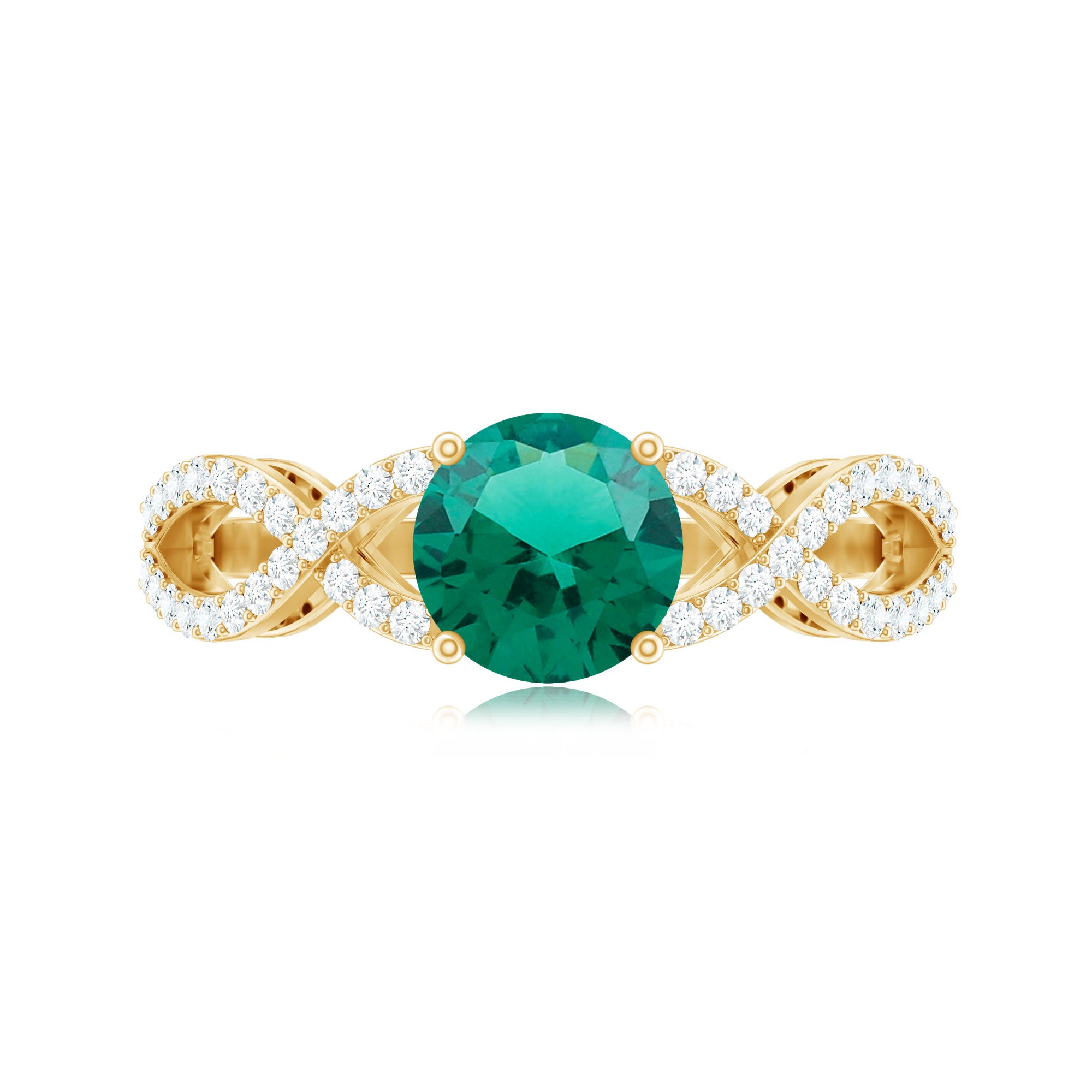 Embark on your new journey with the sparkle of this mesmerizing Solitaire Engagement Ring, that features an 8 mm Round Shape Lab Created Emerald held in Prong Setting, known for its deep green hue. What truly sets this Lab Grown Emerald Ring apart is the graceful Crossover Shank, designed to intertwine like two paths merging into one. The delicate Diamond stones studded along the shank add an extra layer of refinement, catching light from every angle and offering a gentle sparkle. This Crossover Ring is a tale of connection, elegance and timeless beauty. Perfect for those who crave something that feels both modern and classic, this Lab Emerald Diamond Engagement Ring stands apart from ordinary styles. Presented in a signature jewelry box, this Lab Emerald Diamond Ring is available in various ring sizes, for a comfort fit. Whether given as an engagement ring or a meaningful gift, this Lab Created Emerald Ring is sure to capture hearts and attention.