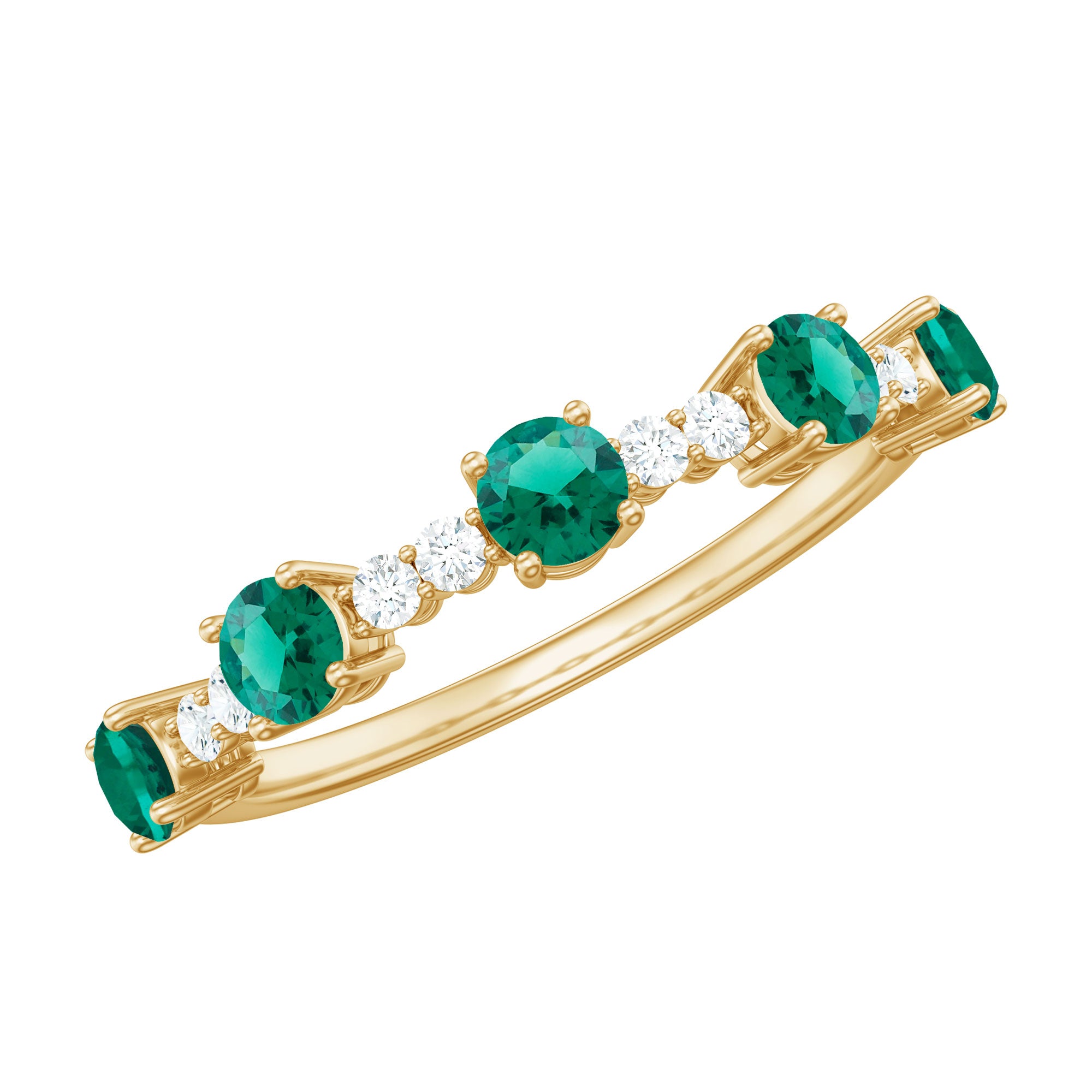Certified Lab Grown Emerald Half Eternity Anniversary Ring with Diamond