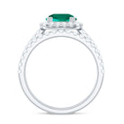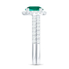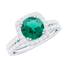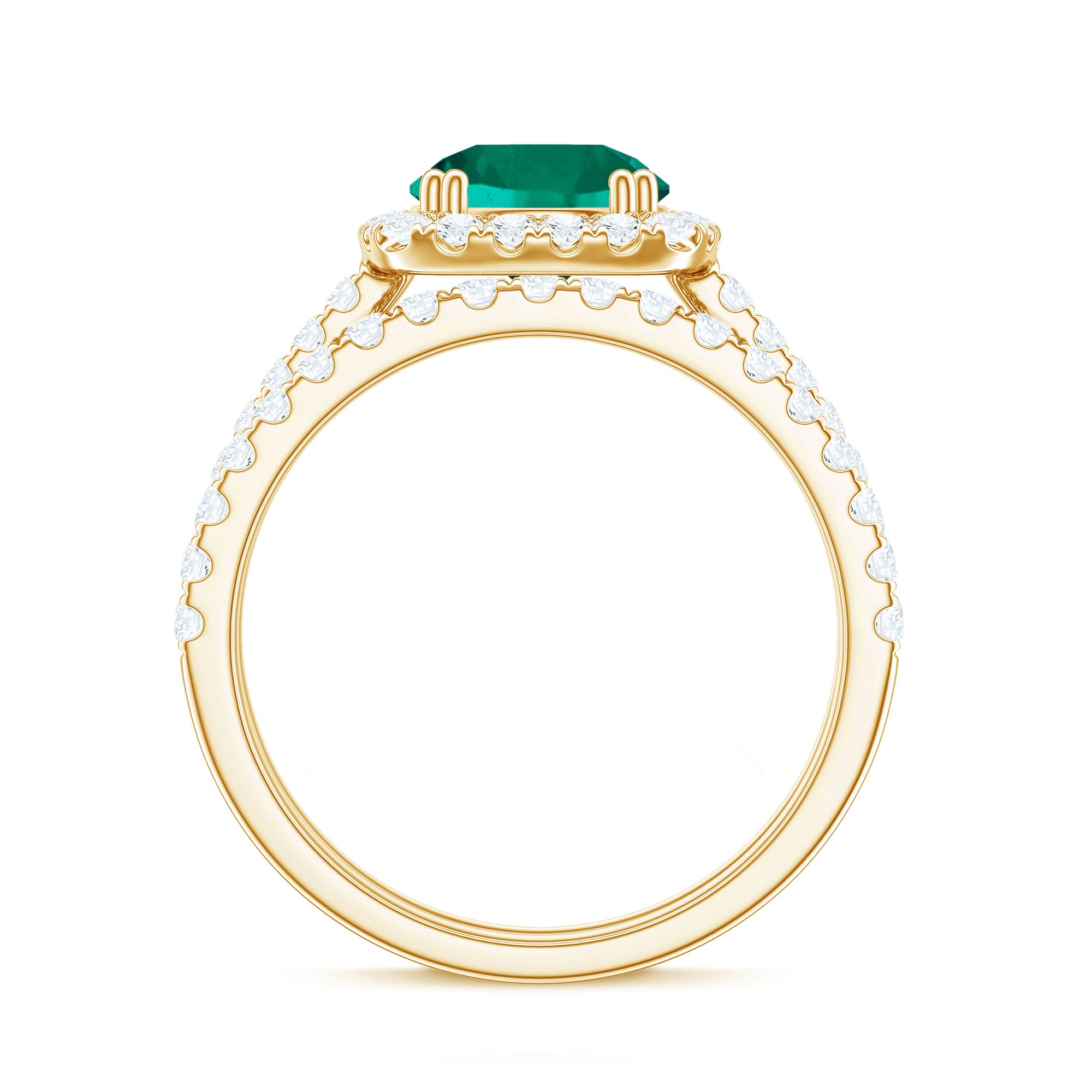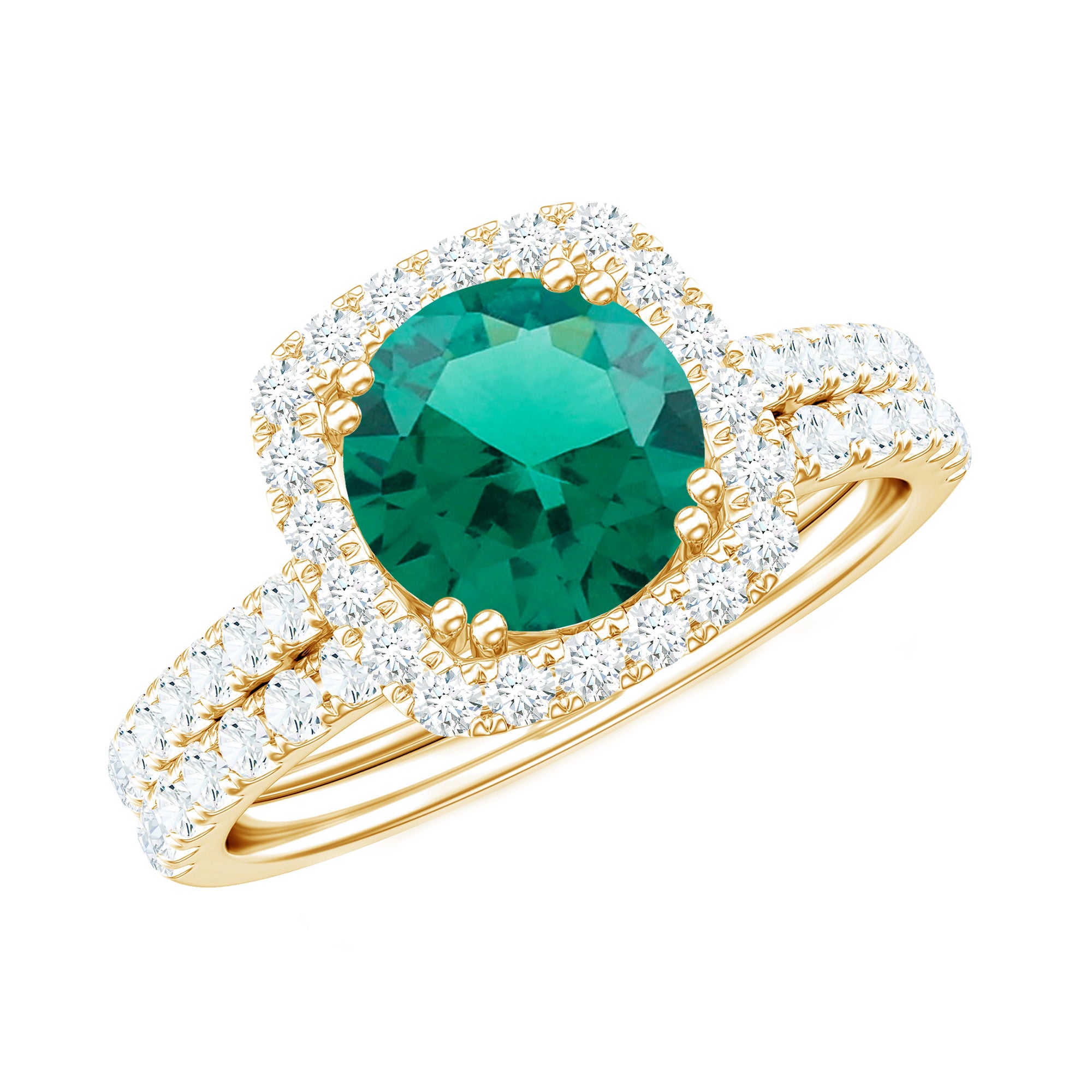 Certified Lab Grown Emerald Halo Engagement Ring with Moissanite Wedding Band