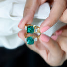 Certified Lab Grown Emerald Moissanite 3 Stone Engagement Ring