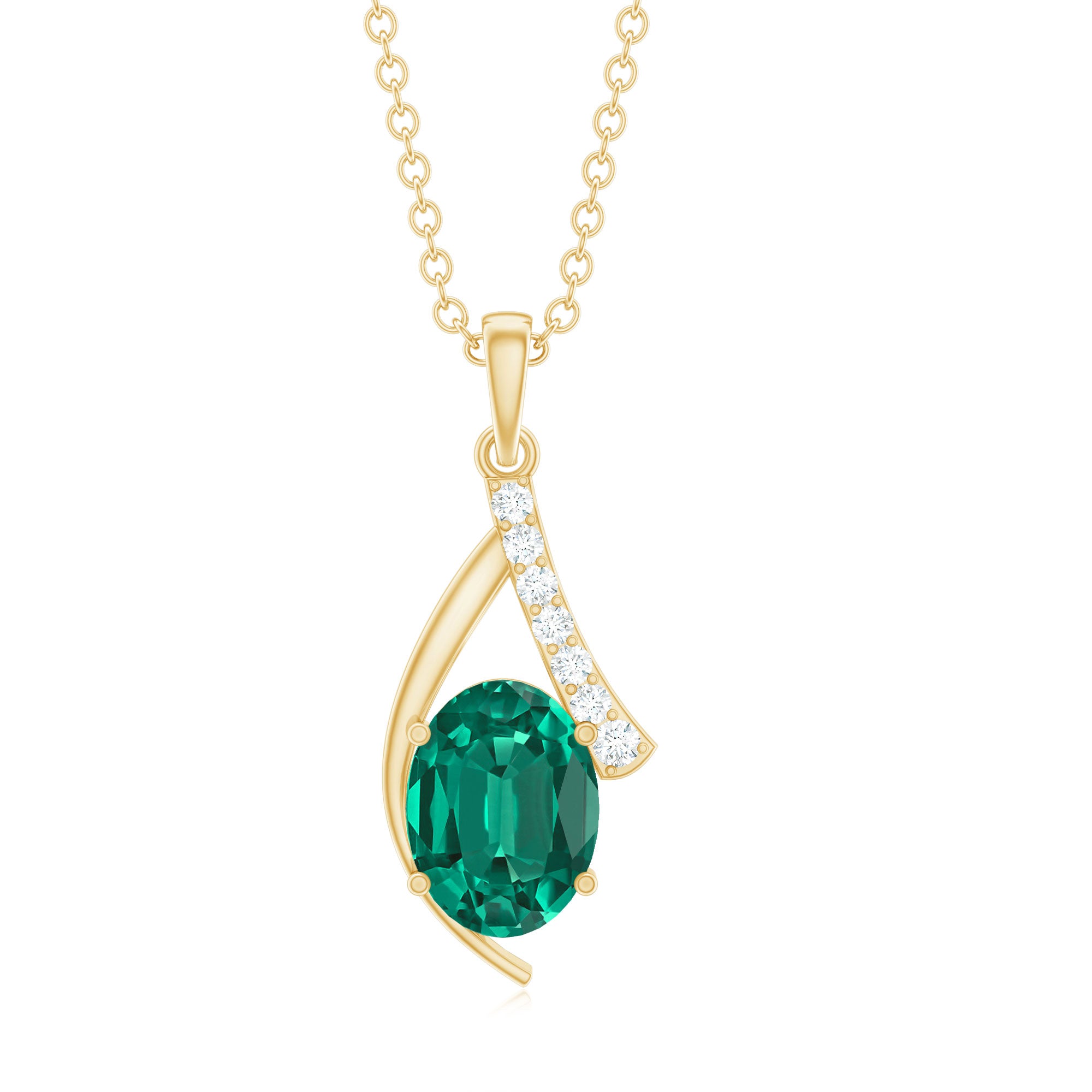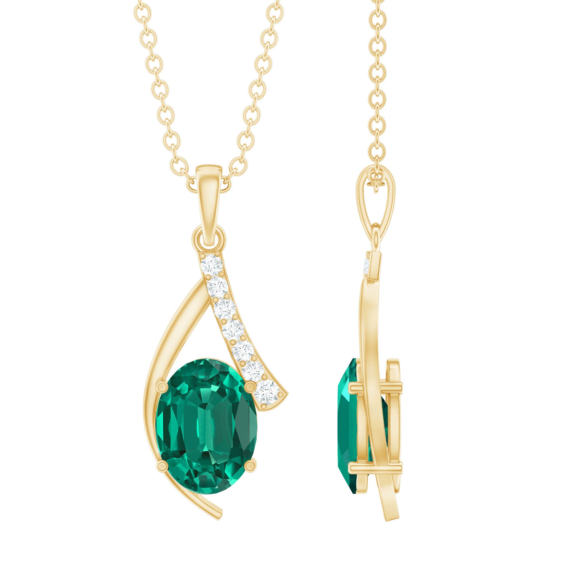 Certified Lab Grown Emerald Pendant Necklace with Diamond Accent