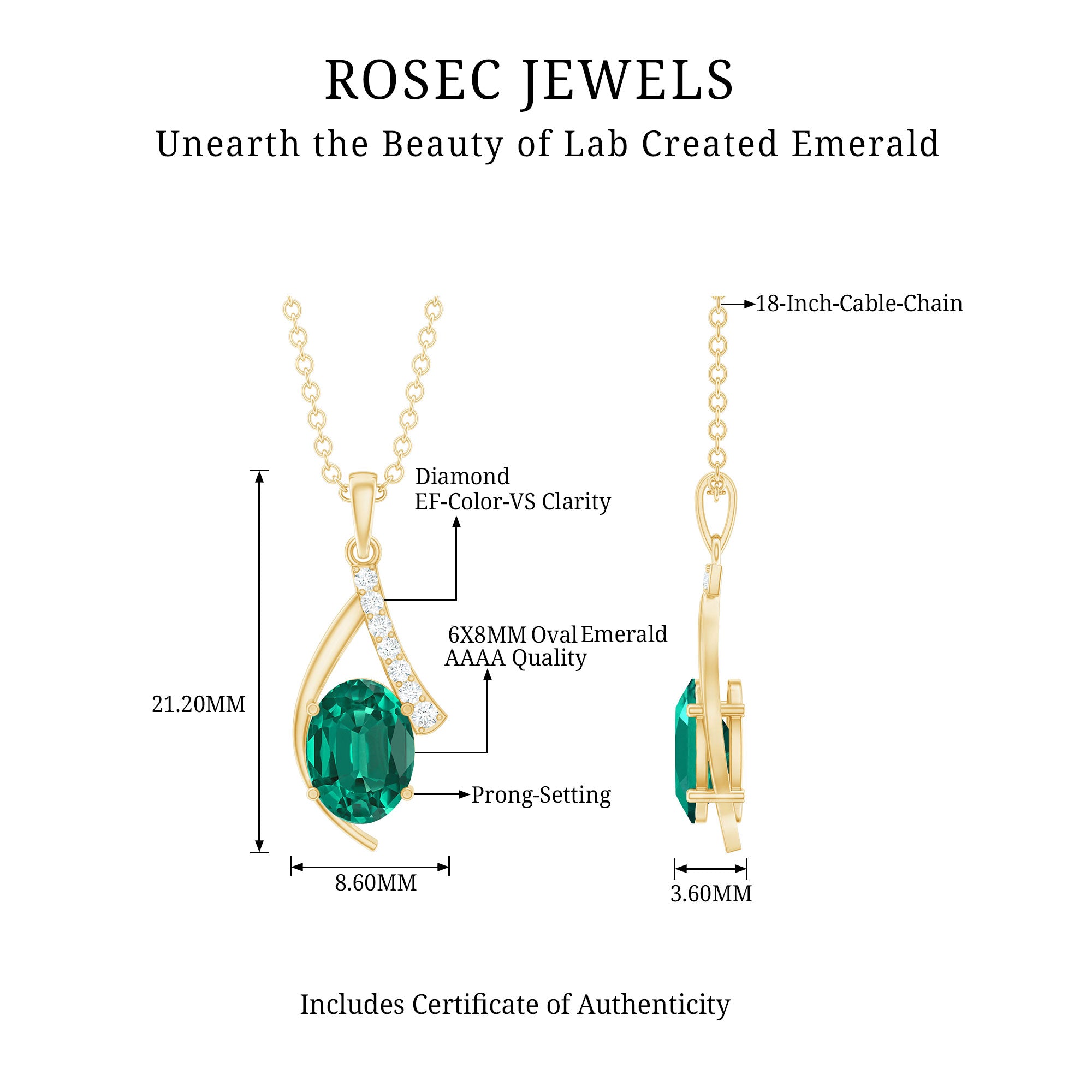 A perfect addition to your Jewelry Collection, this Solitaire Pendant Necklace exudes timeless elegance. Crafted with perfection, the stunning 6x8 mm Oval Shape Emerald takes center stage, radiating vibrant green hues. Delicate Lab Grown Diamond gemstones accentuate the charm of this lab grown Emerald and Diamond Pendant, creating a harmonious balance. Elevate your style with this Emerald Pendant (Synthetic) featuring Aaaa Quality Emerald and Ef-Vs Quality Diamonds, where innovation meets sophistication in every detail.