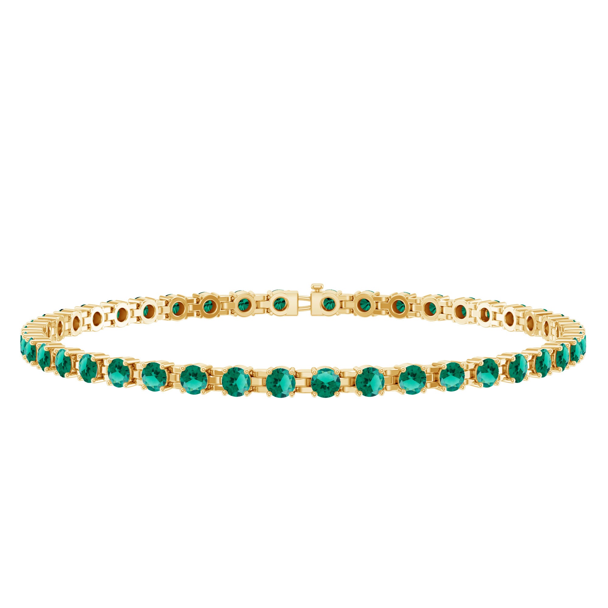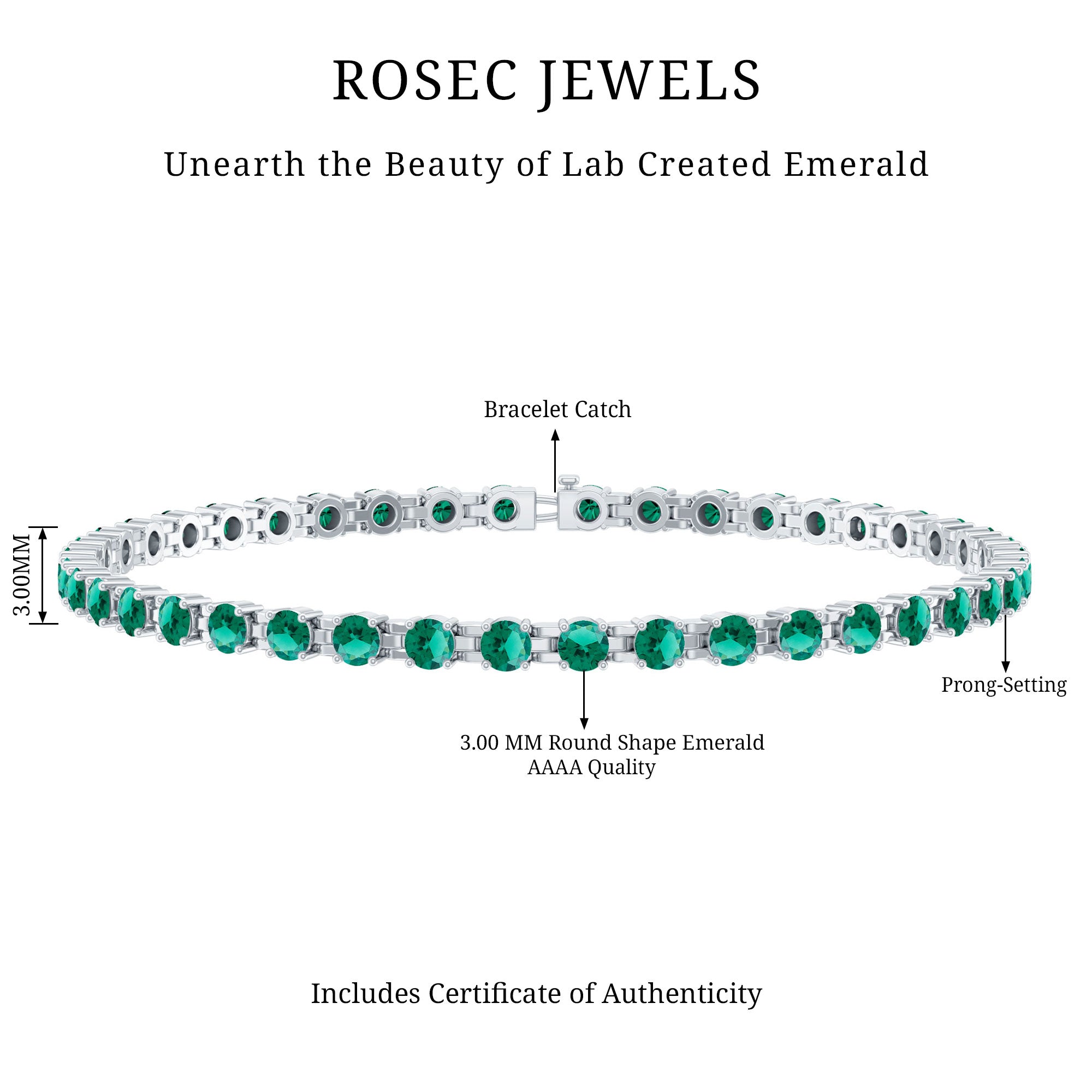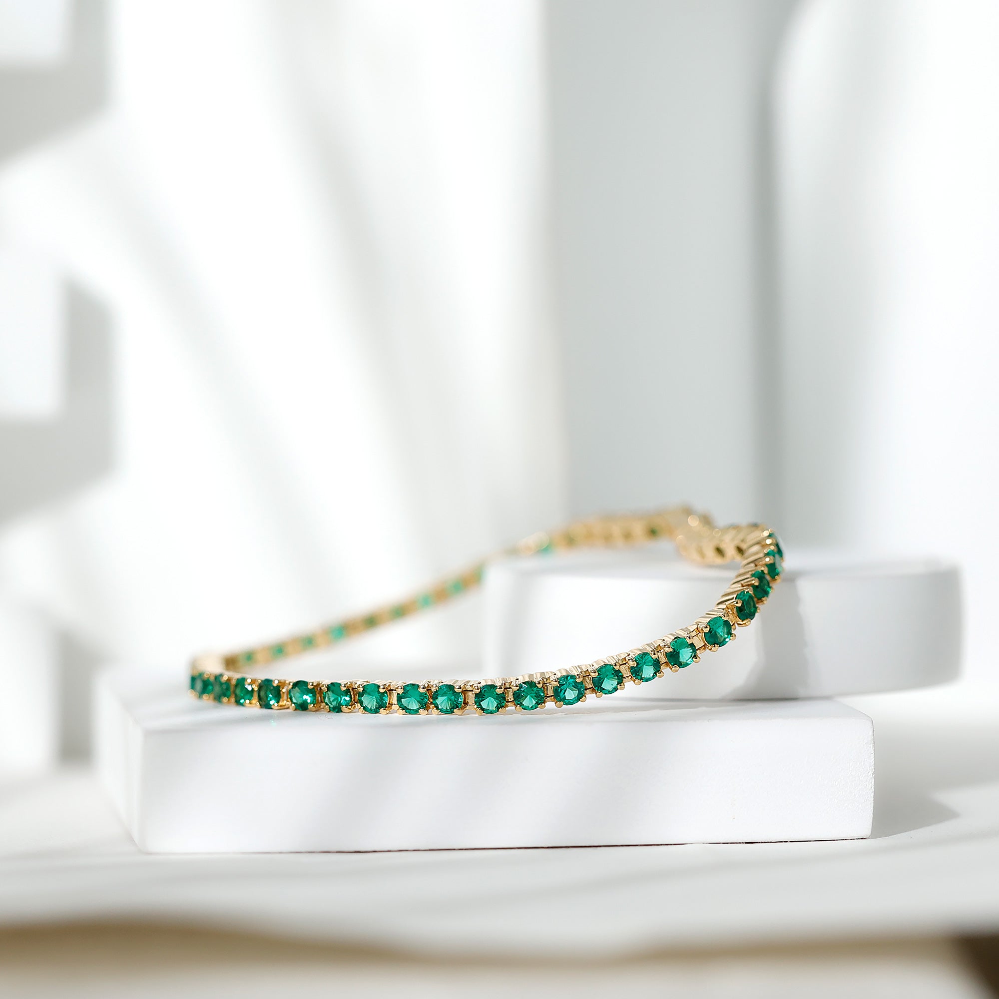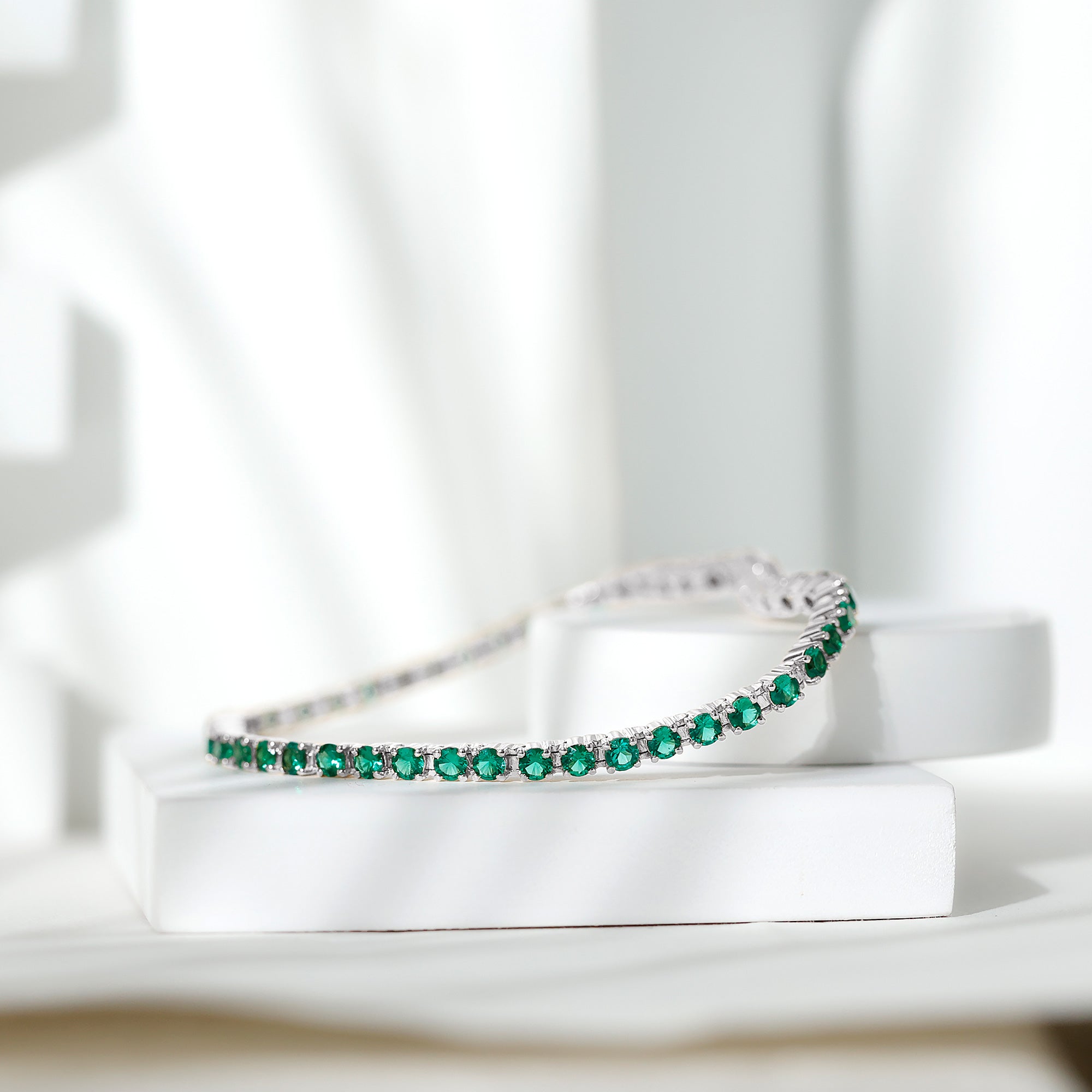 Make your gift extra special with this beautiful Lab Created Emerald Tennis Bracelet. Featuring sparkling round shaped lab created emeralds, each stone is carefully set in secure prong setting to ensure both safety and shine. This elegant Emerald Bracelet is designed as an eternity style, meaning the emeralds go all the way around, symbolizing endless love and appreciation. Perfect for weddings, special occasions, or everyday wear, this Eternity Bracelet adds a touch of timeless beauty to any outfit. It also works wonderfully as a layering piece, allowing you to pair it with another bracelet for a stylish and personalized look. The lab created emeralds used in this bracelet are eco-friendly, making it a thoughtful choice for those who care about sustainability and the environment. More than just jewelry, this Green Tennis Bracelet is a meaningful gift that your loved one will treasure for years to come. Whether given for a birthday, anniversary, or just to show how much you care, it is a symbol of lasting affection and style.
