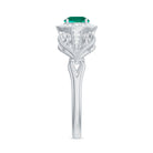 Certified Lab Grown Emerald Vintage Looking Engagement Ring with Diamond