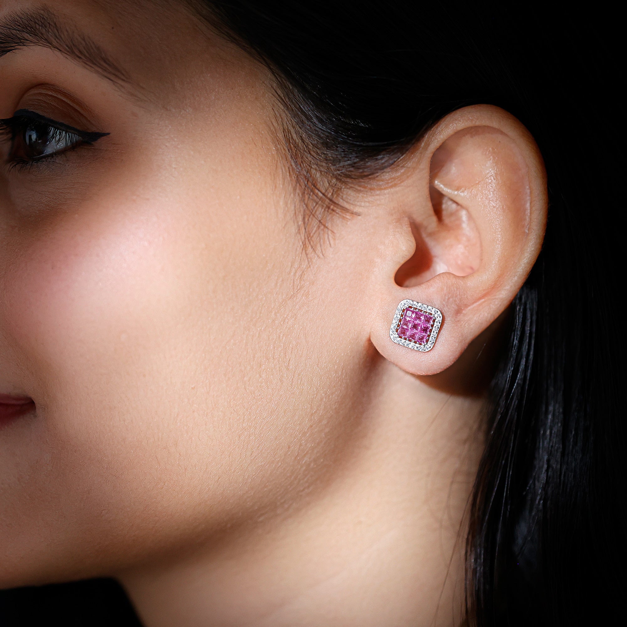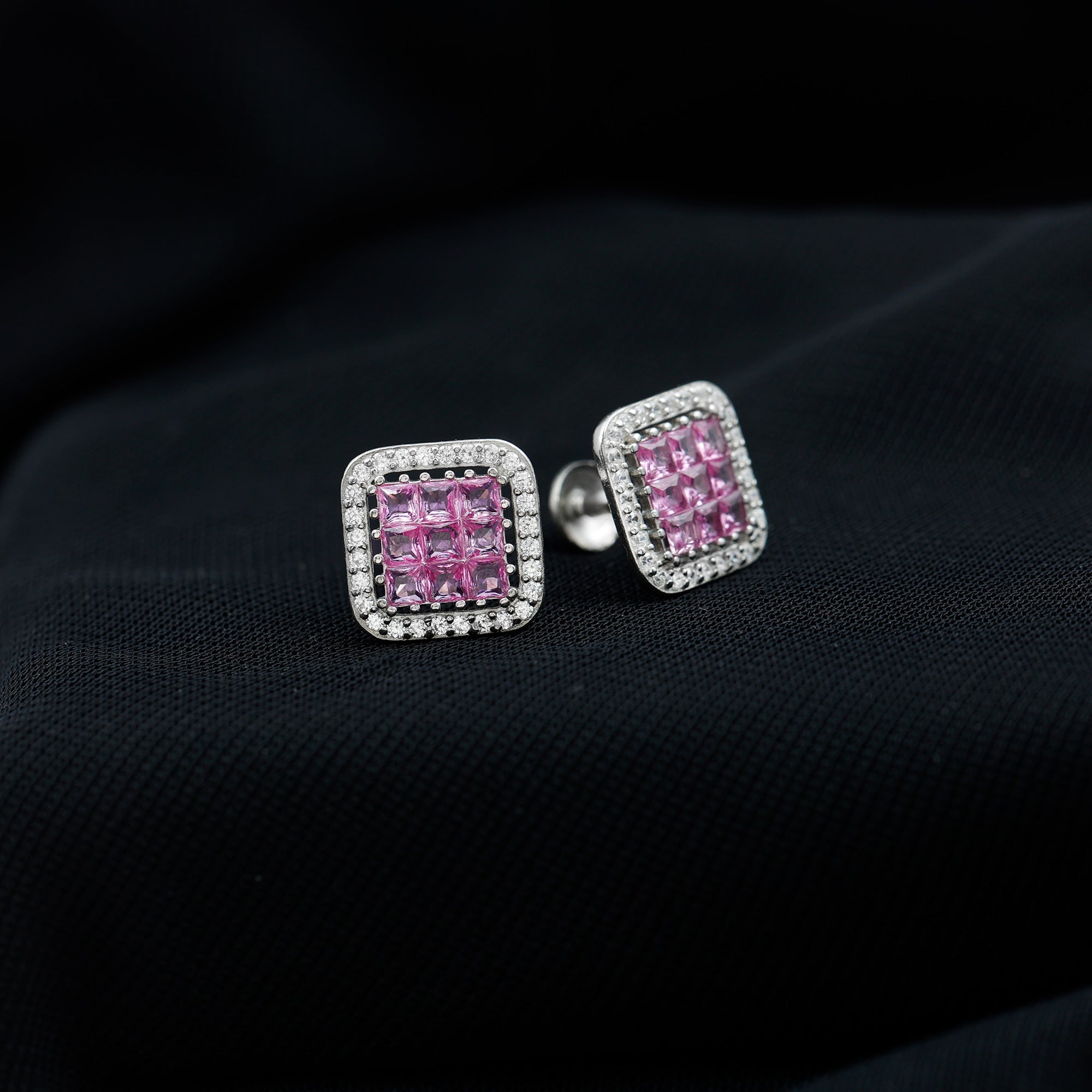 Embrace soft hues of elegance with these Lab Pink Sapphire Earrings, designed to bring a fresh, feminine glow to your everyday style. At the center of each earring sits a cluster of 2 mm Princess Cut Lab Created Pink Sapphire stones, known for their delicate color and modern shape. Surrounding the cluster is a shimmering Zircon Halo that adds extra sparkle without feeling overpowering. Crafted in genuine 925 sterling silver, these Lab Grown Sapphire Earrings offer beauty, while the secure Screw Back Closure keeps them comfortably in place from morning to night. Their subtle pop of color makes them easy to pair with both casual outfits and dressy evening looks, offering endless ways to wear them. Presented in a signature jewelry box, these Lab Pink Sapphire Stud Earrings are a stylish addition to your collection but also a thoughtful gift for someone who loves unique, feminine jewelry. Perfect for birthdays, anniversaries, holidays or simply brightening someone’s day, these Lab Pink Sapphire Studs bring together charm, sophistication and everyday ease. With their gentle pink sparkle and graceful design, they make the perfect finishing touch for anyone who wants to add a hint of romance and modern elegance to their look.