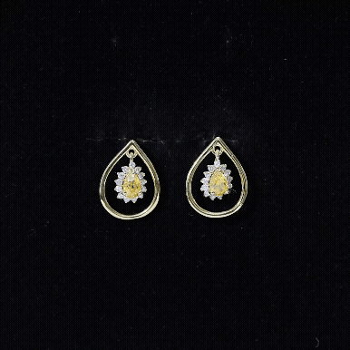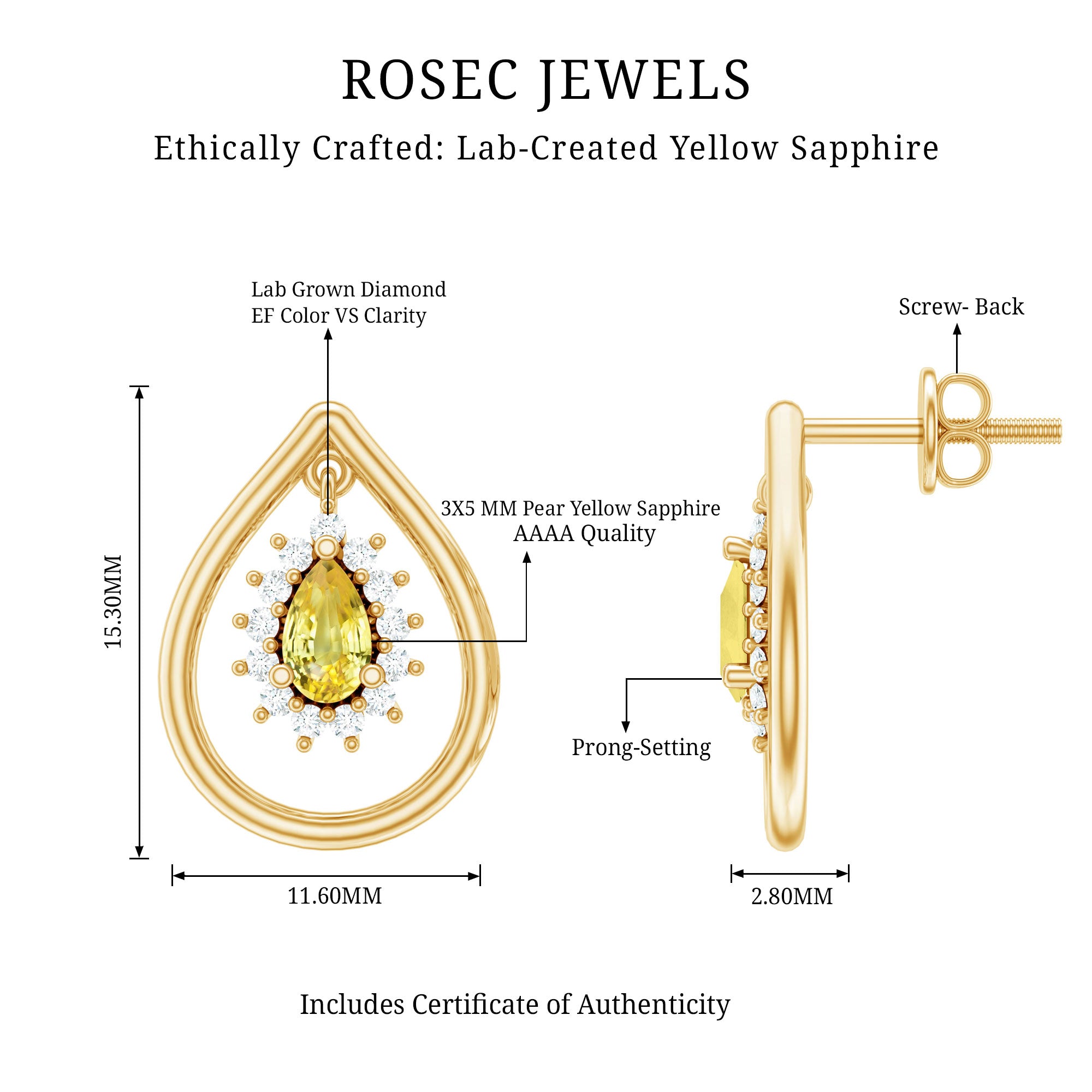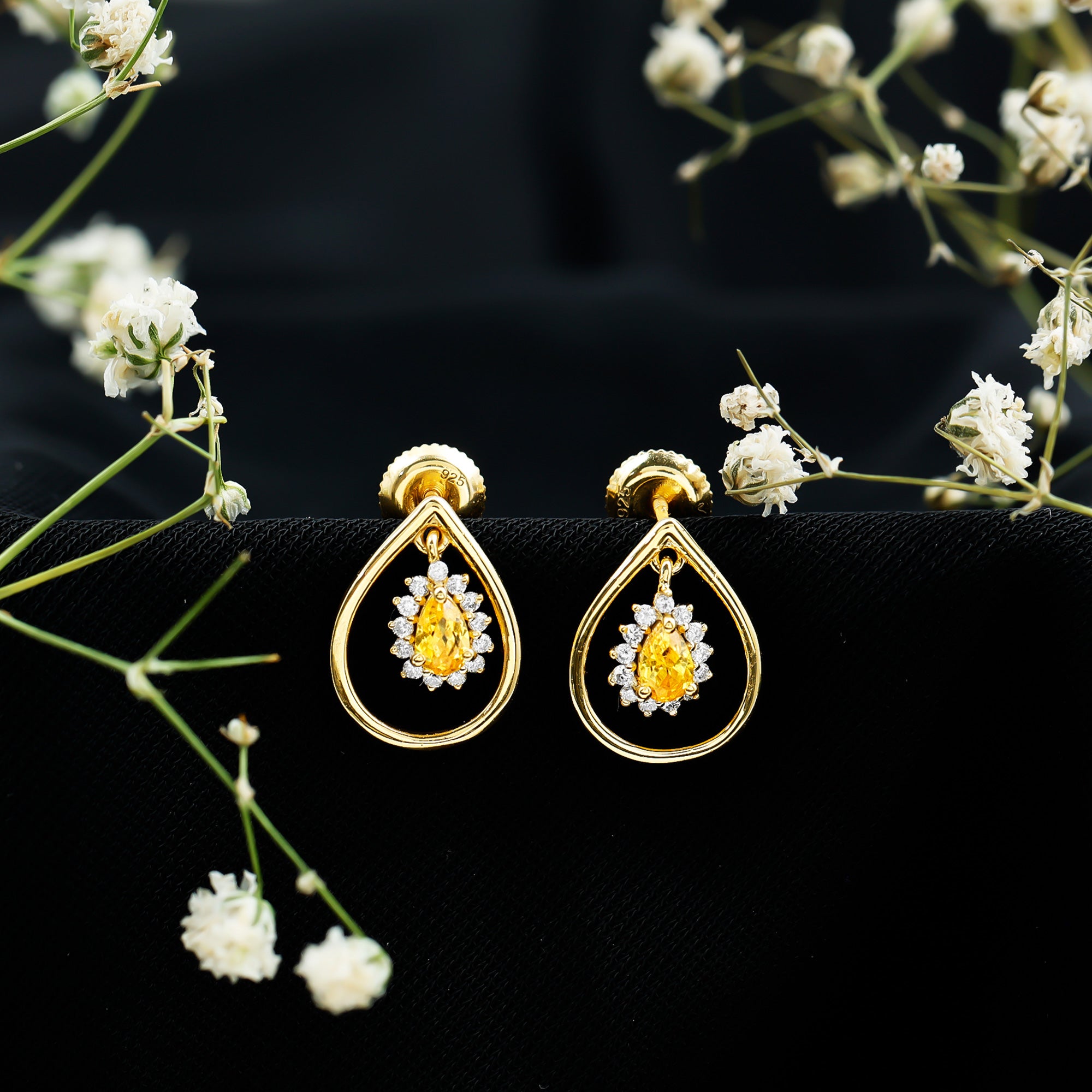 Certified Lab Grown Yellow Sapphire Diamond Teardrop Earrings with Screw Back