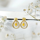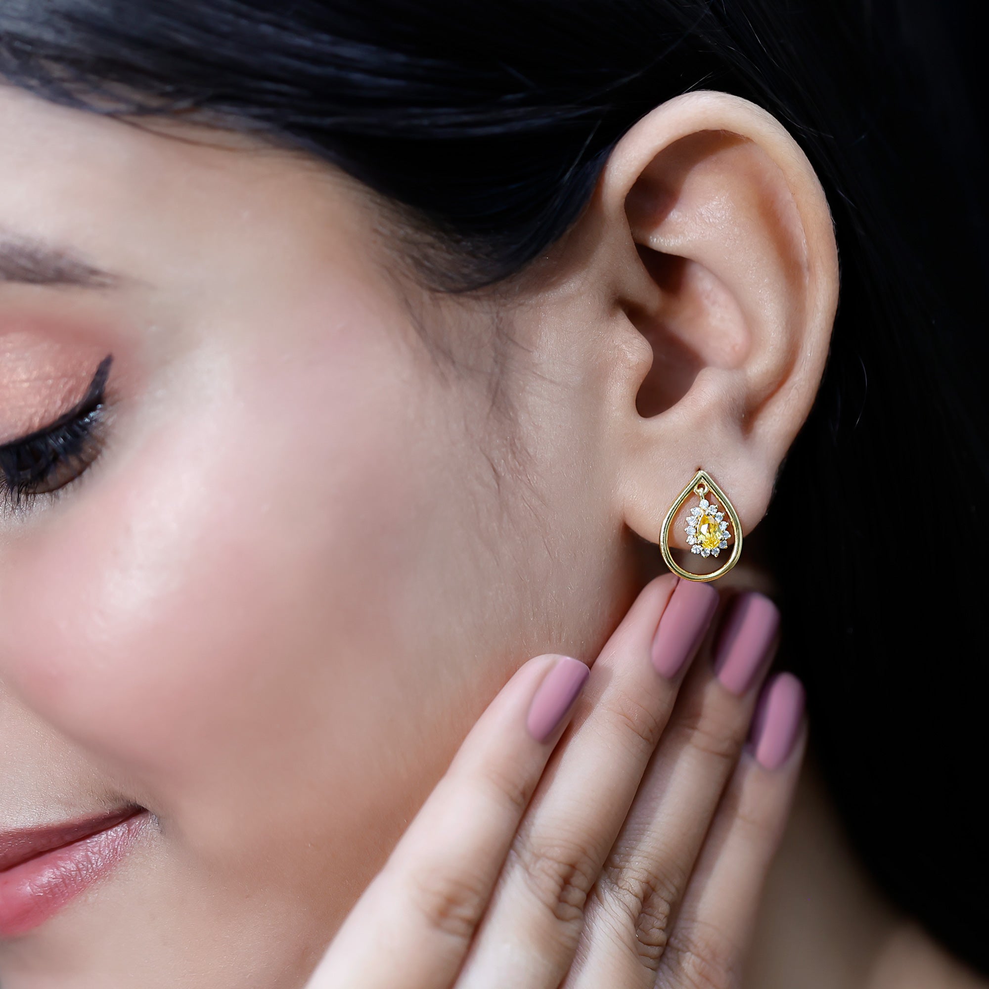 Bring more charm and sunshine to your look with these Teardrop Stud Earrings, a perfect blend of elegance and radiance. Each earring features a stunning 3X5 mm Pear Shape Lab Created Yellow Sapphire at its center in Prong Setting, surrounded by a Halo of sparkling Lab Grown Diamond stones that amplify its golden glow. The gemstones are set within an Open Teardrop frame crafted in Yellow Gold Plated Silver, creating a graceful design that catches the light beautifully from every angle. Secured with Screw Back Closure, these Lab Grown Sapphire Earrings are as comfortable as they are dazzling, making them ideal for everything from casual gatherings to glamorous evenings out. Their warm tones add a cheerful yet sophisticated touch to any outfit, whether paired with a sleek dress or a chic work ensemble. Arriving in a signature jewelry box, these Lab Yellow Sapphire Earrings also make an exquisite gift for birthdays, anniversaries or moments when you simply want to celebrate someone special.