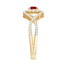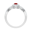 Certified Lab Ruby and Diamond Crossover Engagement Ring with Halo