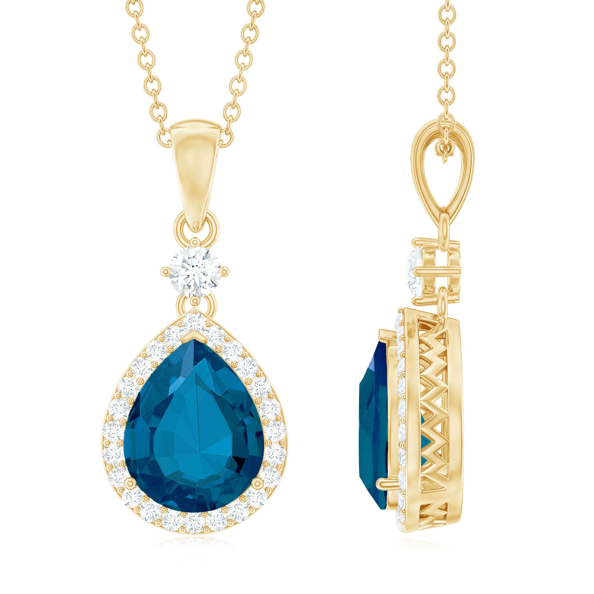 Certified London Blue Topaz Teardrop Necklace with Moissanite Halo