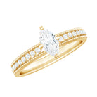 Certified Marquise Cut Moissanite Vintage Solitaire Ring with Side Stones
